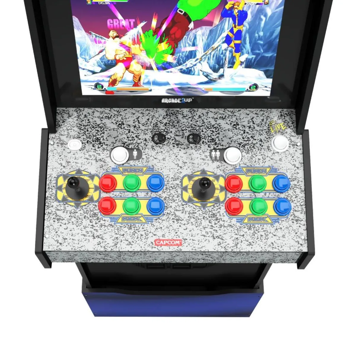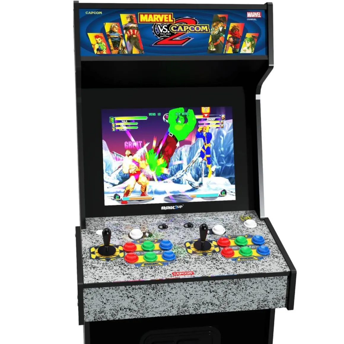 Arcade1Up – Máquina recreativa MARVEL VS CAPCOM, una fantástica cabina de Arcade1up con 8 de los mejores videojuegos basados en Marvel.