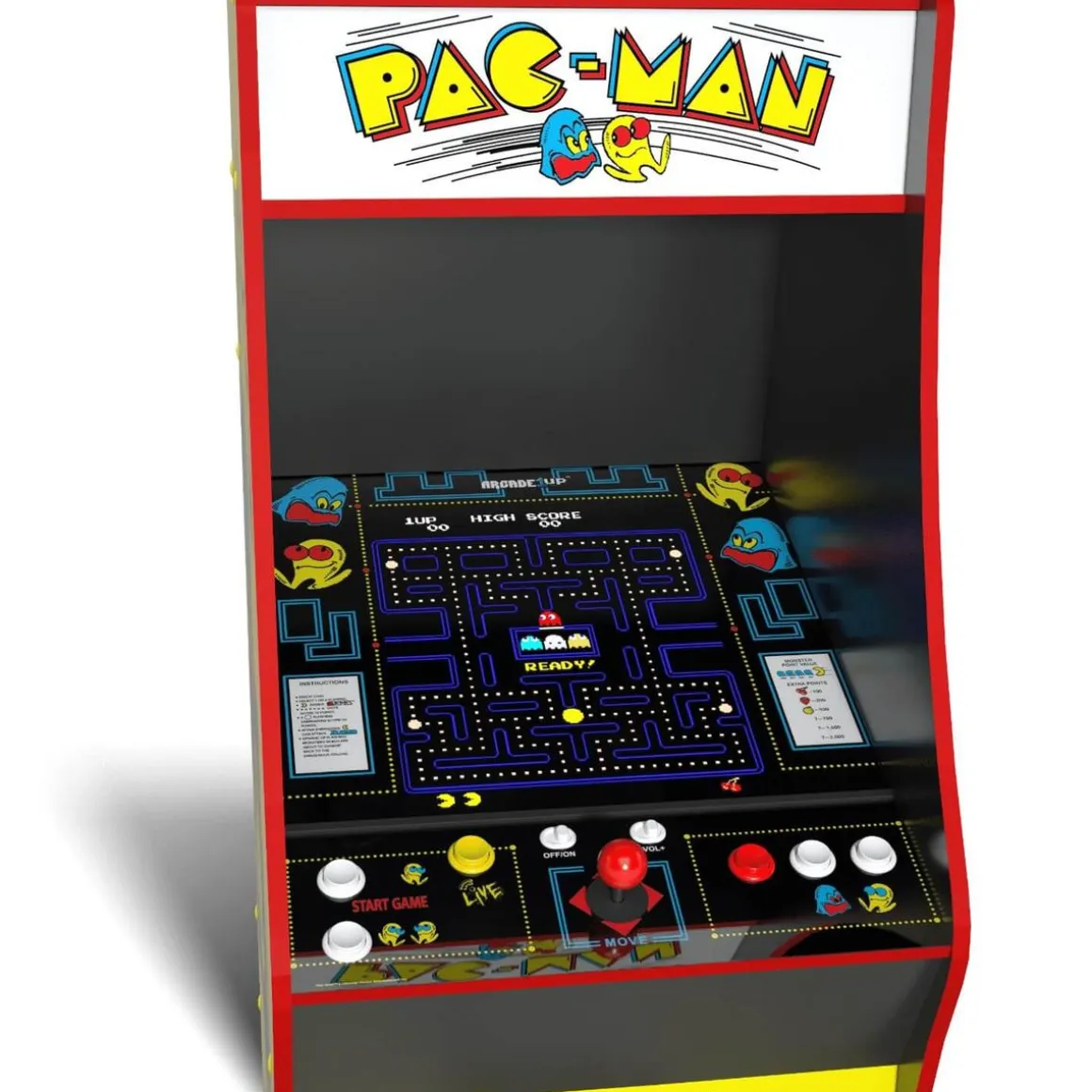 El diseño del gabinete de aspecto único y elegante, la marquesina iluminada y la falsa puerta de monedas frontal, que son los elementos distintivos de nuestra nueva Edición Deluxe, le dan ese auténtico aspecto retro que añadiría carácter y clase a cualquier habitación de la casa. El joystick y los botones que se sienten reales te permiten navegar por el laberinto, devorar POWER-PELLETs y esquivar a BLINKY, PINKY, INKY y CLYDE. Y ahora, con las tablas de clasificación WIFI, puedes publicar tus puntuaciones y competir con amigos y jugadores de todo el país.