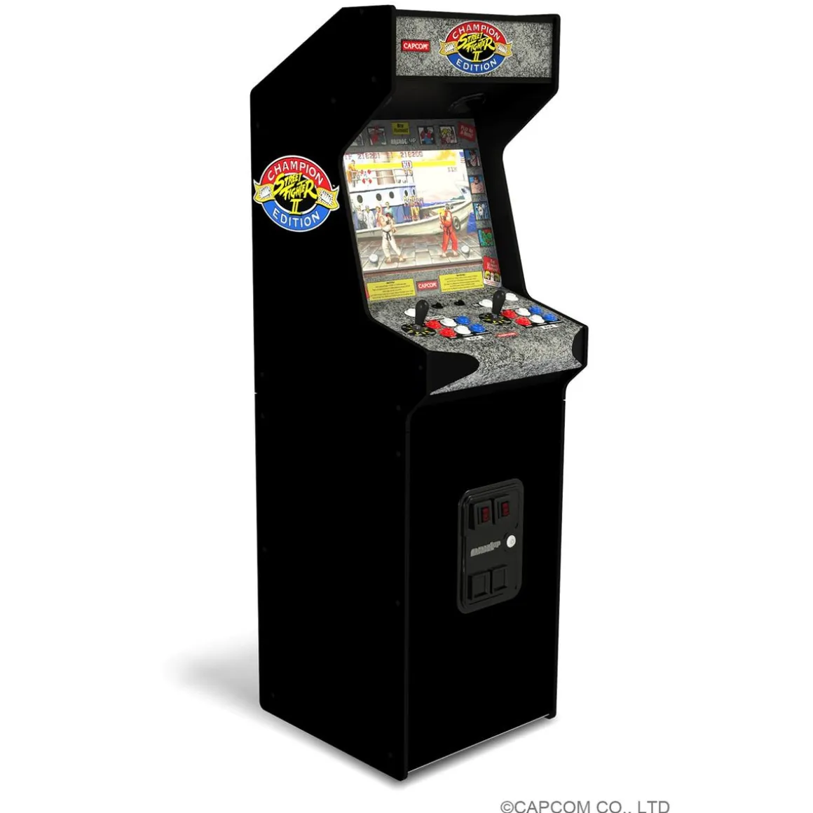 Arcade1Up – Máquina Recreativa Street Fighter II Deluxe. Street Fighter II desencadenó el resurgimiento de la cultura de los salones recreativos en la década de 1990. Llévate a casa un pedazo de la historia de los videojuegos con la Máquina Arcade1Up Street Fighter II Deluxe. Inspirada en la icónica forma del gabinete Dynamo HS-5, esta elegante máquina combina el aspecto clásico que recuerdas con características modernas para jugar. Con capacidades de Multijugador y Tablas de clasificación en línea mediante Wi-Fi, elige entre 14 exitosos juegos de Capcom y desafía a tus amigos online.