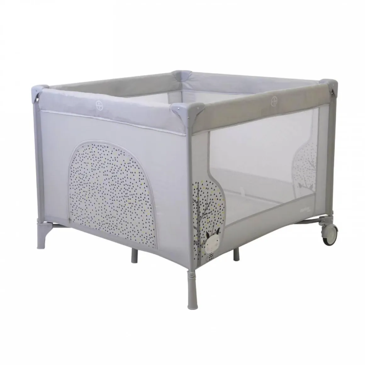 Esta cuna de viaje – parque infantil está confeccionada en un tejido impermeable y dispone de una práctica puerta con cremallera.