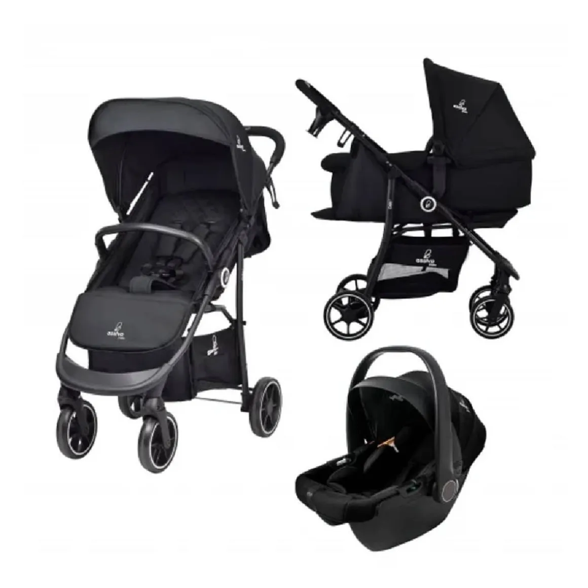 El Trío Oslo de Asalvo es la solución ideal para cubrir todas las necesidades de paseo del bebé, desde el nacimiento hasta etapas más avanzadas. Este completo sistema incluye silla de paseo, capazo y asiento de coche (grupo 0+), proporcionando comodidad, seguridad y funcionalidad en un solo conjunto. Con un diseño moderno y materiales de calidad, convierte cada salida en un momento tranquilo y confiable.