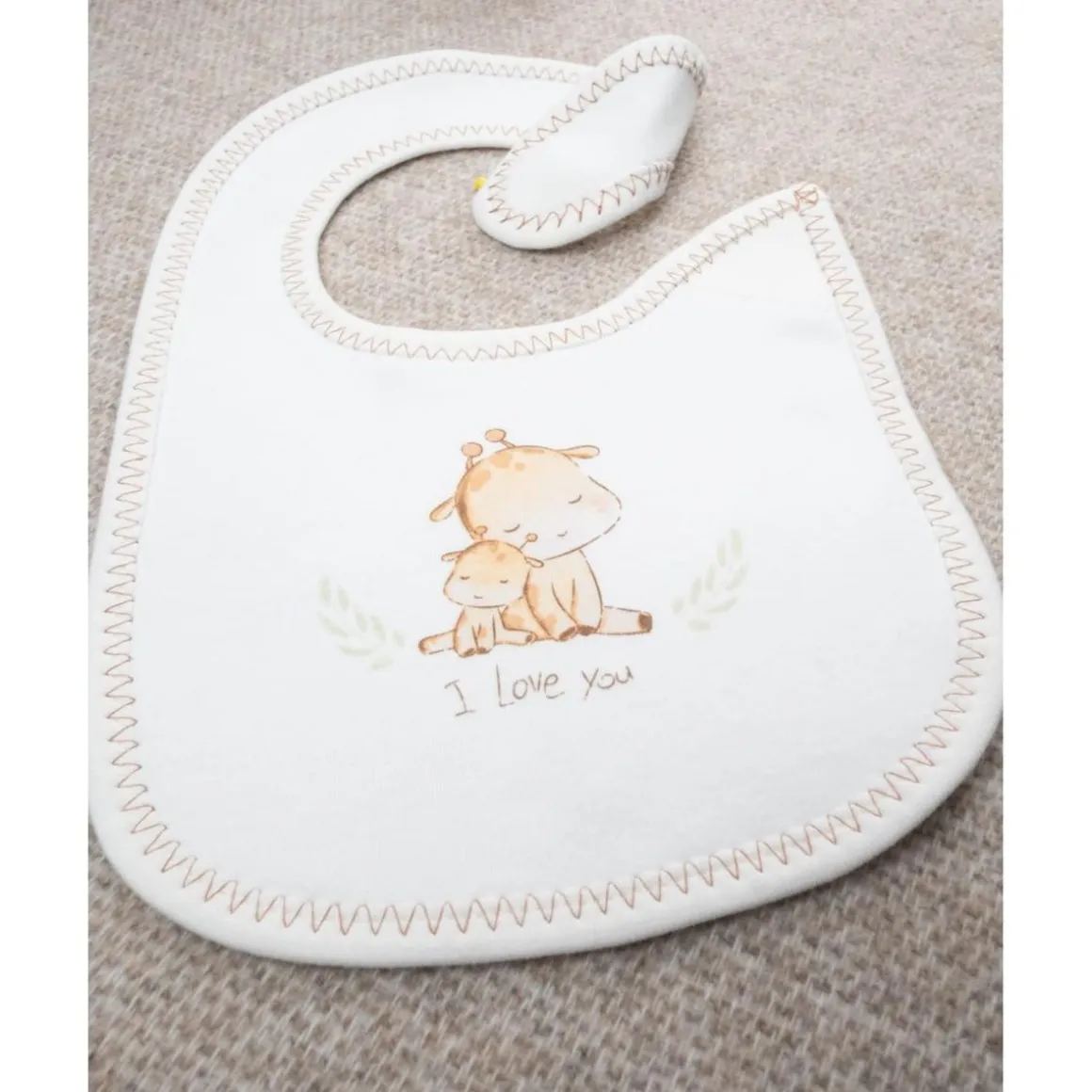 Babero básico para niño. Sobre base crema con pequeño estampado de jirafas a tono. Suave y seguro al vestir. Fabricado en algodón Oeko-Tex, testado para garantizar seguridad. Accesorios no incluidos. La caja contiene solo la prenda de ropa.