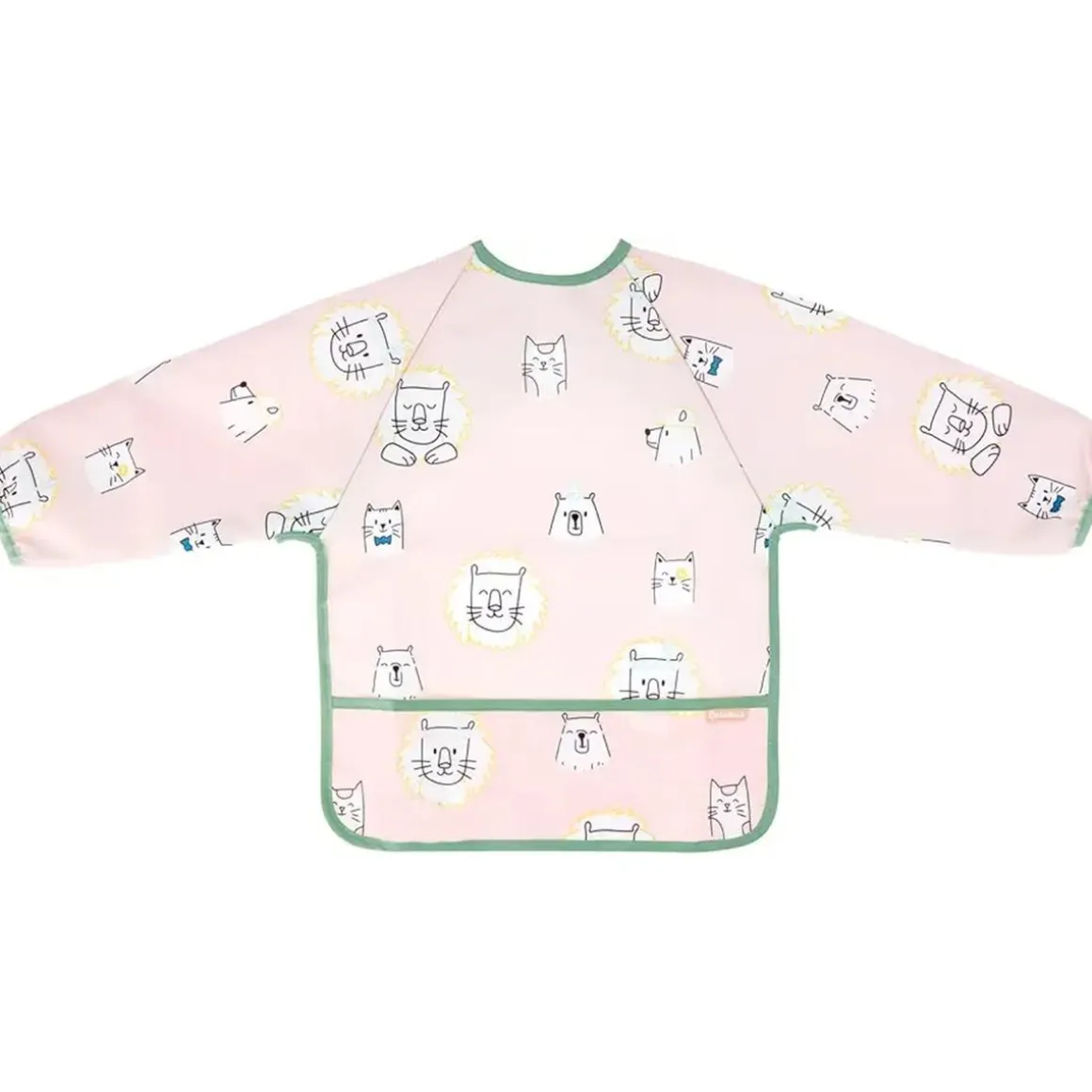 Las mangas largas con puños elásticos son ideales para no dejar escapar ni un guisante revoltoso y la gran bolsa central es excelente para atrapar esos trocitos de comida que intentan aventurarse más allá del plato. ¡Todo está pensado para que esos lanzamientos de puré terminen en el babero y no en la ropa!