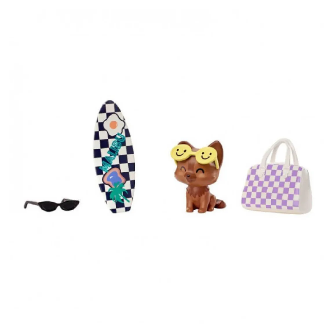 Barbie comparte su gusto por la moda con su adorable mascota, que también está llena de estilo y comparte sus accesorios.
