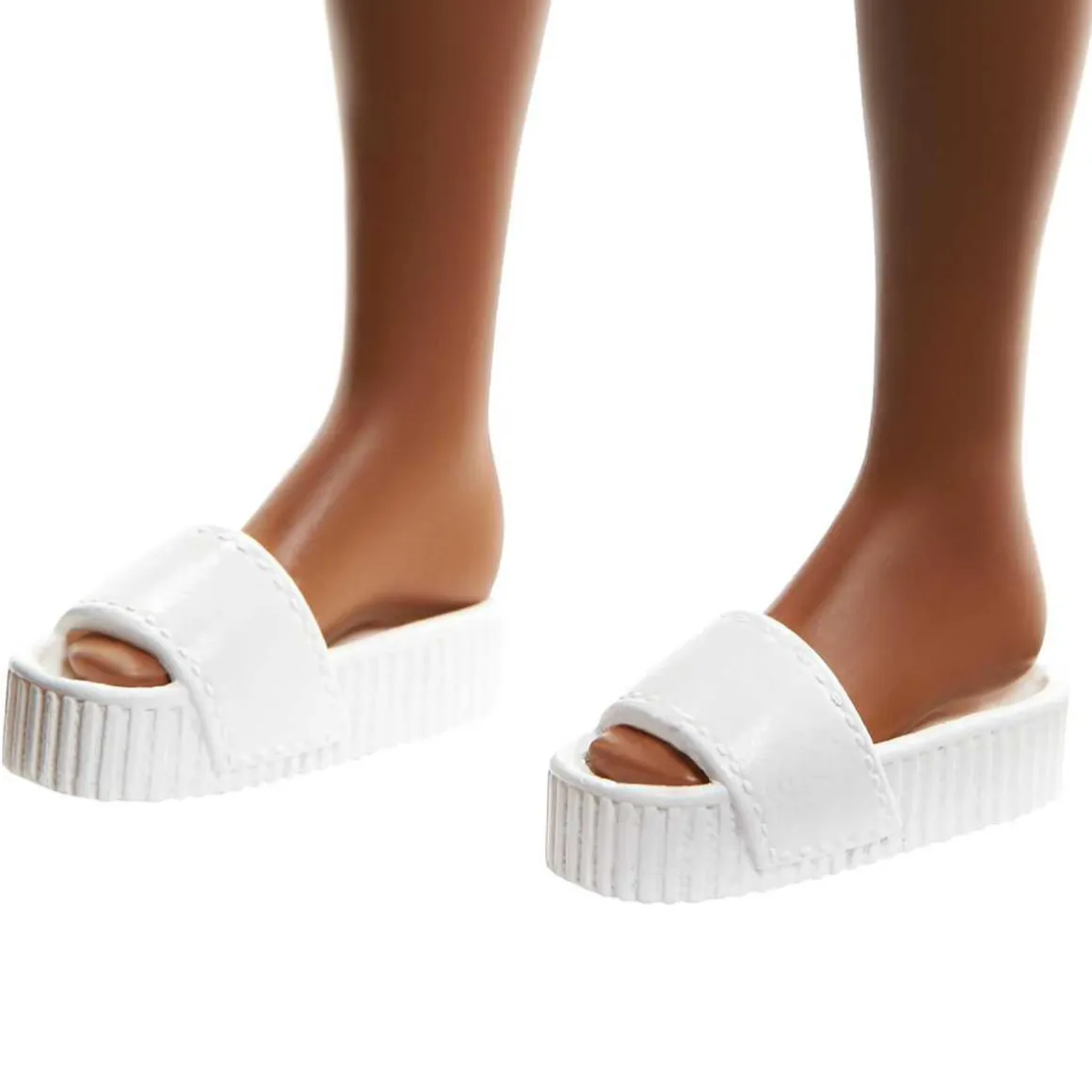 Incluye 1 muñeca, un conjunto de ropa, 1 par de sandalias blancas y 1 par de pendientes dorados.