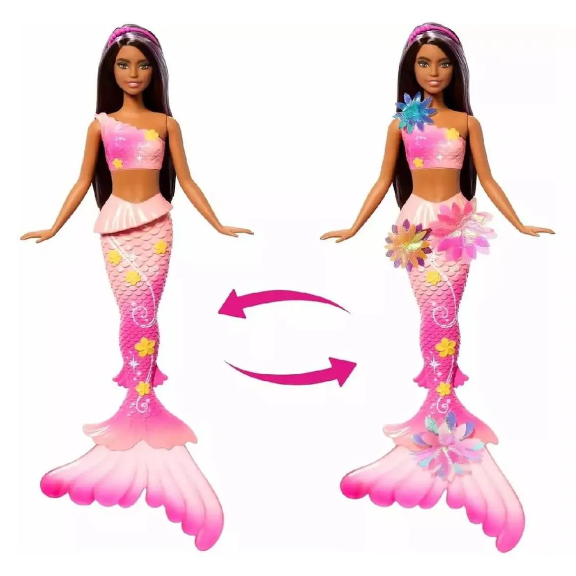 ¡Sumérgete en un mundo de fantasía y magia con la muñeca Barbie Sirena Flores Mágicas! Esta encantadora muñeca sirena transforma el juego en una experiencia llena de color y creatividad.