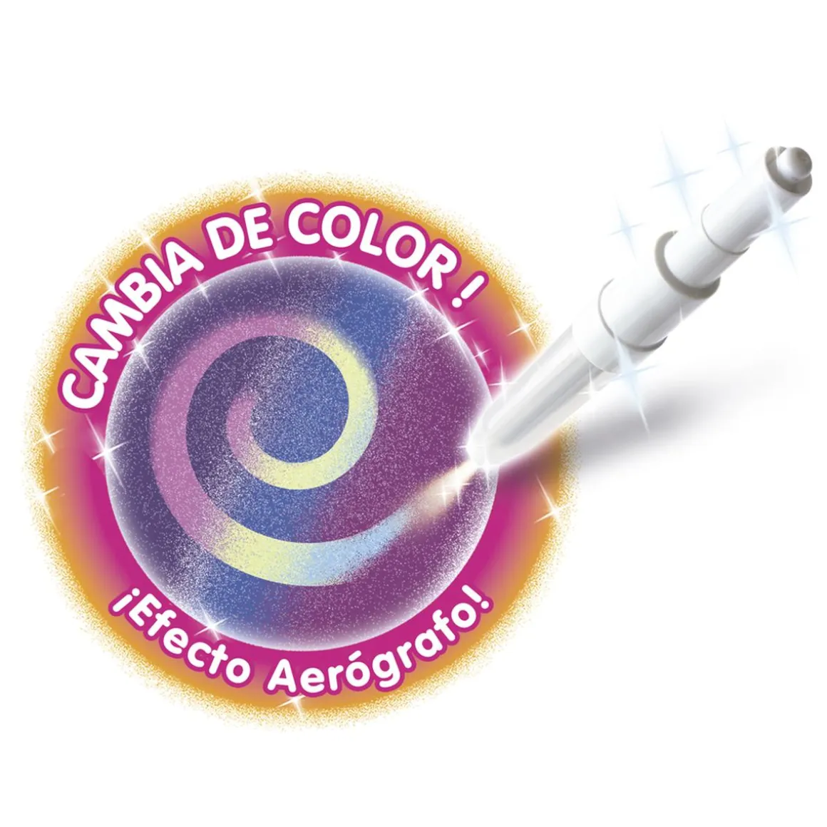 Incluye 10 rotuladores bicolor, 1 rotulador mágico, más de 20 plantillas y stickers de accesorios para miles de creaciones.