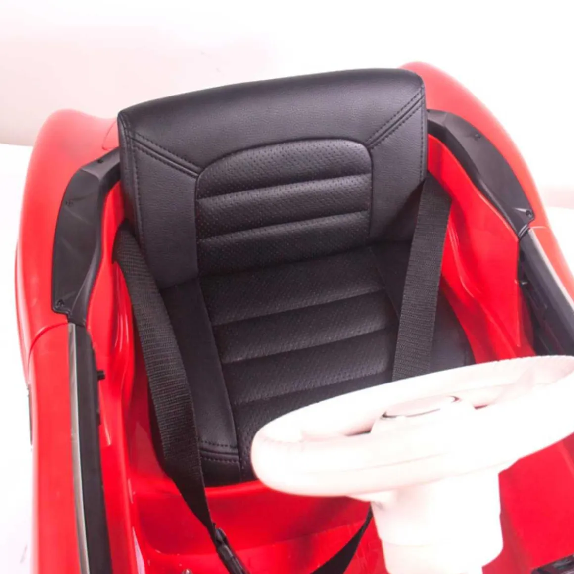 El elegante frontal del coche incluye display con entrada MP3 y USB para reproducir tu música favorita. Podrás circular a una velocidad de 5-6 km/h pisando el acelerador incluido o circular a control remoto bajo supervisión.