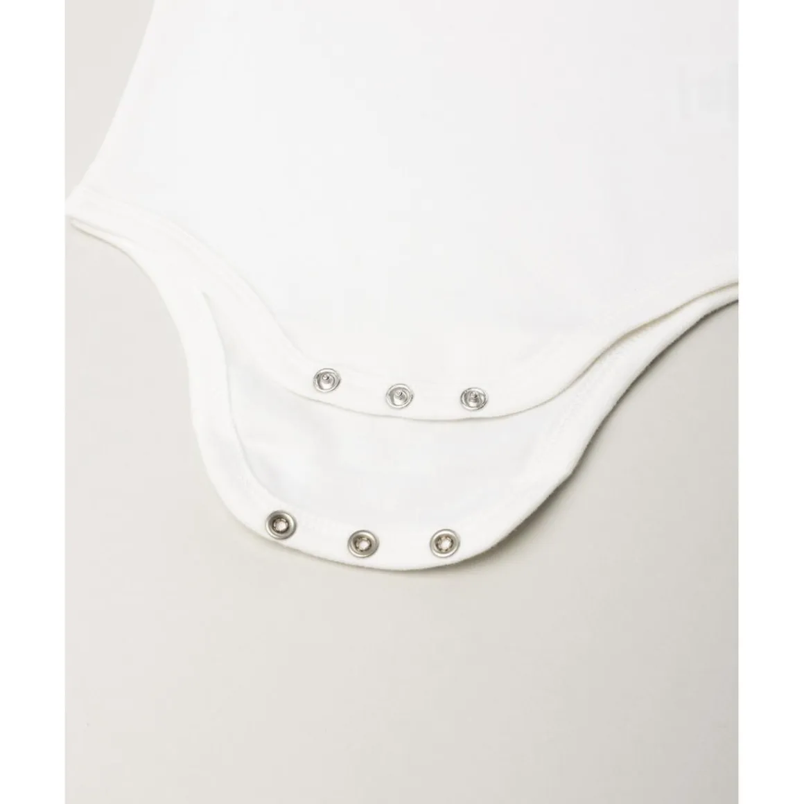 Encantador body de niña en color blanco con cuello alto adornado con un pequeño volante. Su tejido suave y transpirable lo hace ideal para el uso diario, manteniendo al bebé cómodo en todo momento.