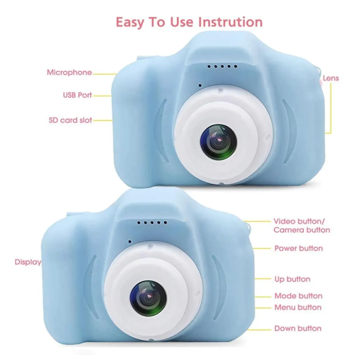 Cámara digital infantil azul. Una cámara infantil para hacer fotos y vídeos con una calidad excelente.