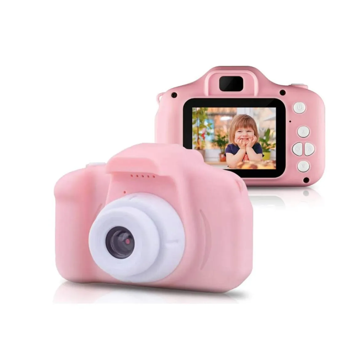 Cámara digital infantil rosa. Una cámara infantil para que los niños aprendan a hacer fotos y vídeos con una calidad excelente.