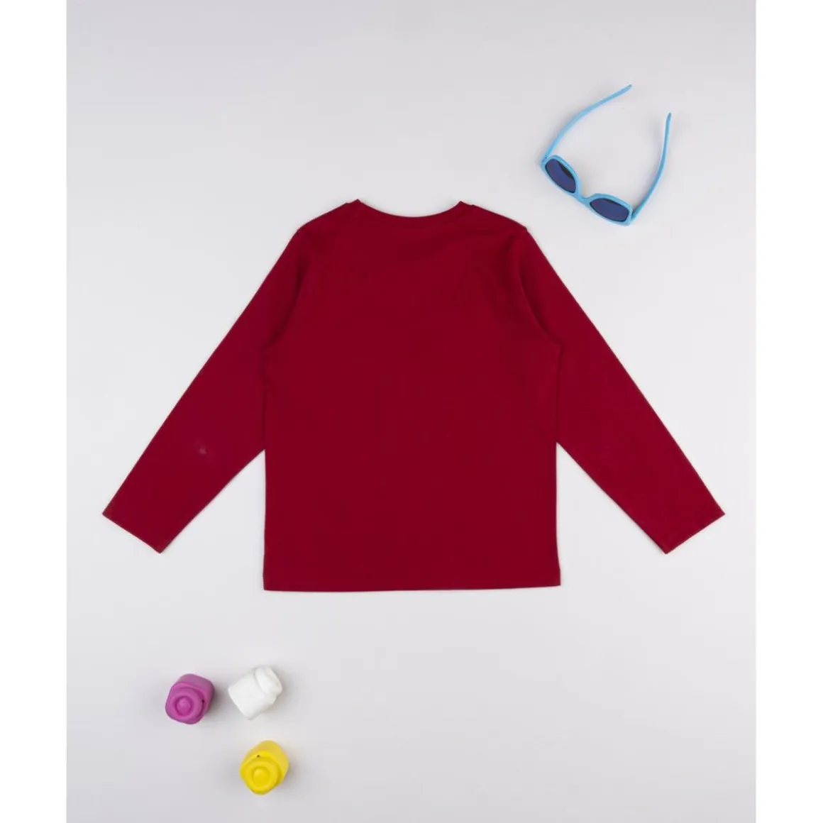 La camiseta burdeos estampada para niño combina sencillez y estilo casual. Confeccionada en 100% algodón, ofrece un tacto suave y transpirable, ideal para el día a día. Su diseño en color burdeos con estampado frontal aporta un toque moderno, mientras que su corte regular garantiza comodidad en cada movimiento.