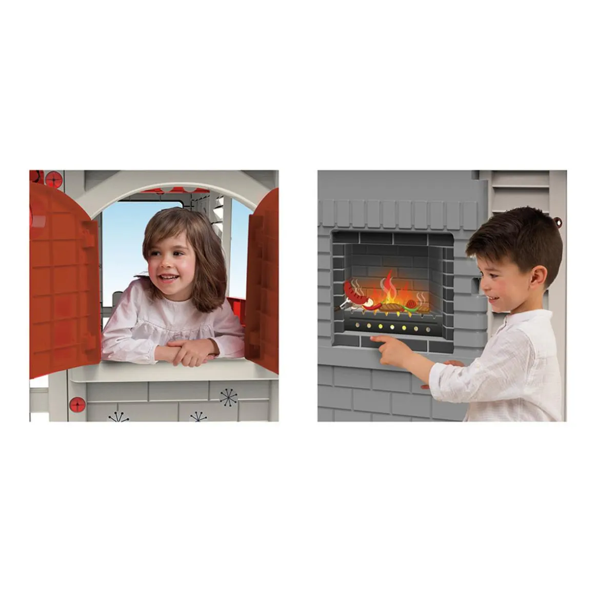 La casita Le Chalet tiene ventanas que se abren, puerta, buzón para cartas, una barbacoa en la parte posterior, una gatera para que las mascotas también puedan ser invitadas y adhesivos para que puedas decorarla cómo más te guste… horas y horas de diversión garantizada.