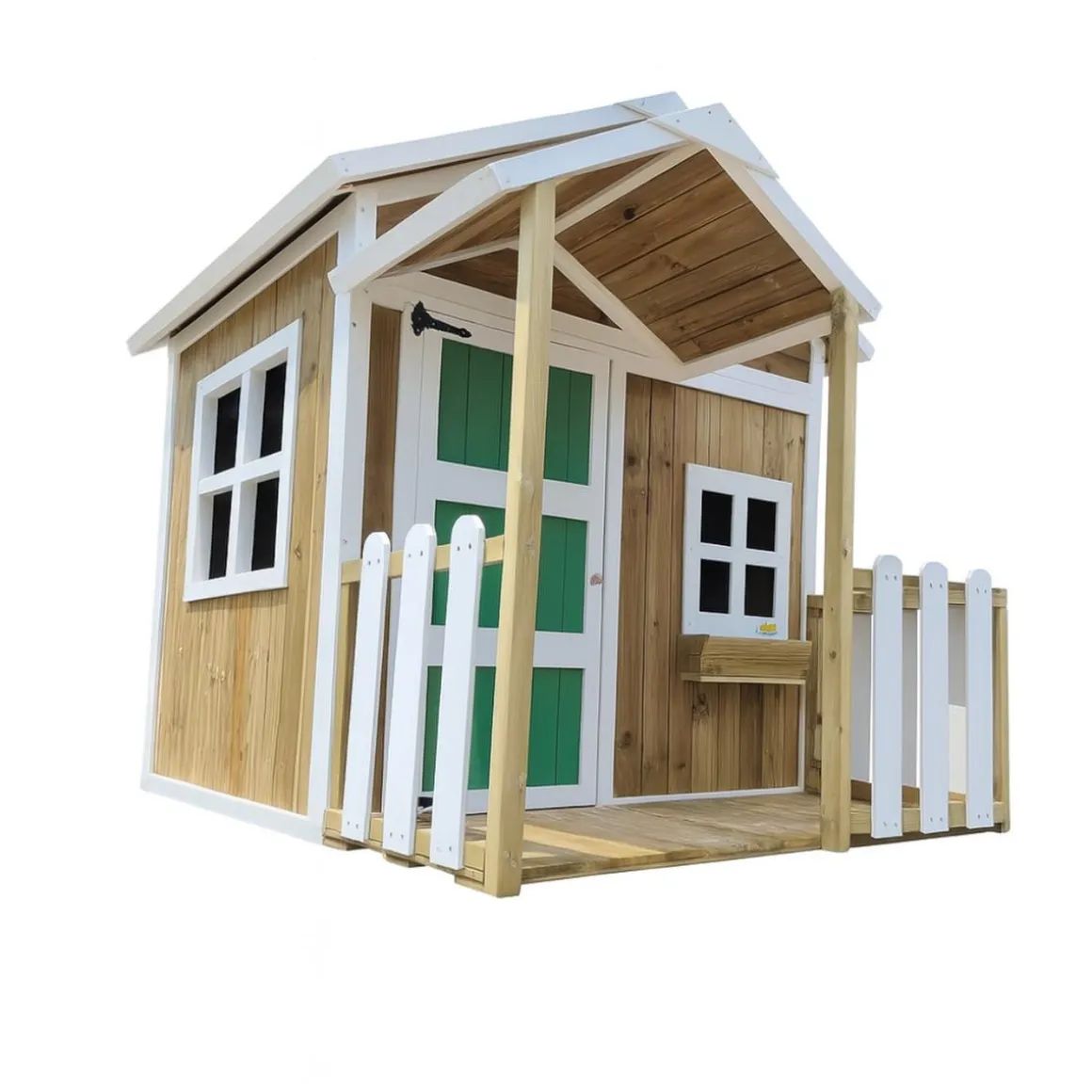 Invita a la ilusión al jardín con la casita Olden, inspirada en el encanto de las casitas estadounidenses. Su porche frontal y la puerta con cierre magnético crean una experiencia acogedora y divertida.