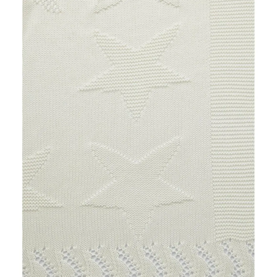 Este cálido chal de punto está confeccionado en hilo de algodón blanco y presenta un diseño tonal de grandes estrellas, aportando elegancia y confort.