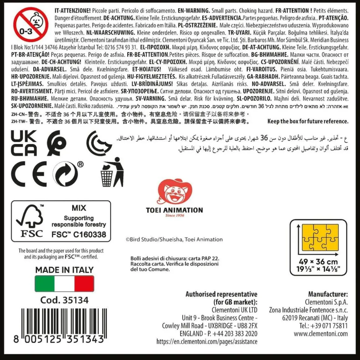 Y, por último, pero no menos importante, el Puzzle Cubo ha sido fabricado en Italia y forma parte de la alta calidad que caracteriza a los productos Clementoni. ¡No te pierdas la oportunidad de tener este fantástico Puzzle Cubo de Dragon Ball Super!