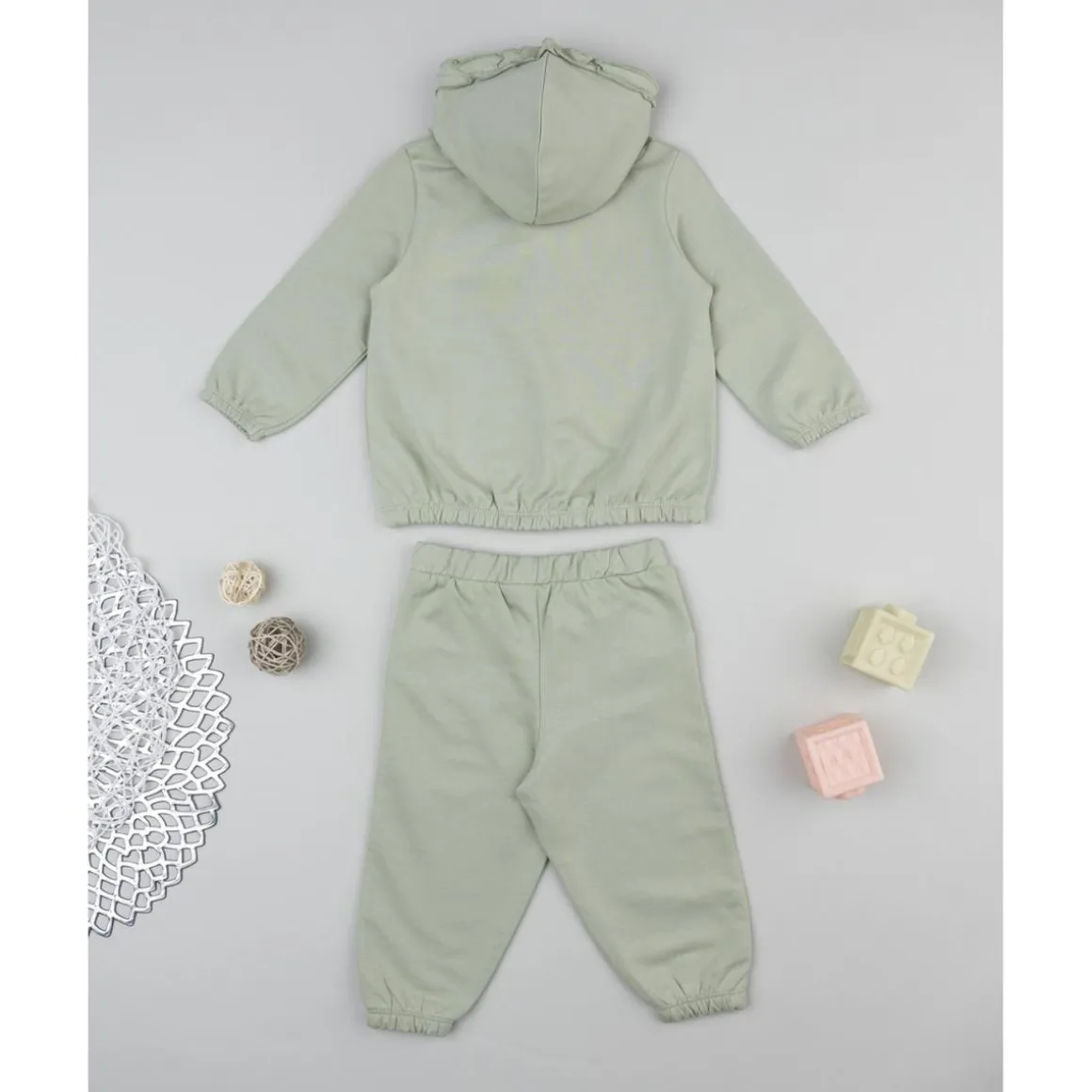 Bonito conjunto jogging para niña, en verde claro con estampado «Happy». Incluye sudadera con capucha y pantalones con bolsillos y cintura elástica. Interior afelpado para mayor calidez y confort.