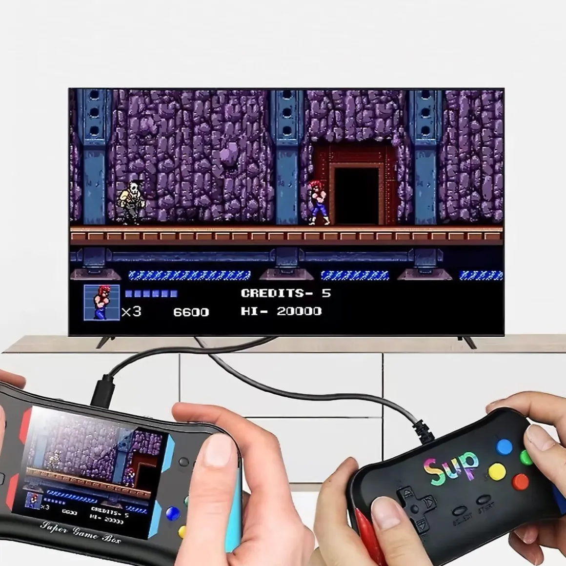 Con su pantalla HD de 3.5 pulgadas, esta consola es compacta y fácil de llevar, lo que te permite disfrutar de tus juegos retro en cualquier momento y lugar. Es perfecta para viajes y actividades de entretenimiento familiar, ya que te permite relajarte y fortalecer tus relaciones mientras juegas. Además, la consola Retro X7M ofrece la posibilidad de conectarla a la televisión y admite hasta 2 jugadores simultáneos. Con el gamepad incluido, puedes disfrutar de la emoción de los juegos de dos jugadores y experimentar una experiencia de juego inmersiva en la pantalla grande de tu televisor.