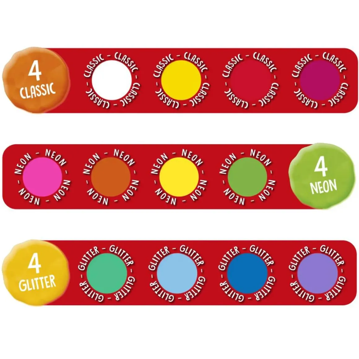 - 4 colores brillantes con purpurina.
