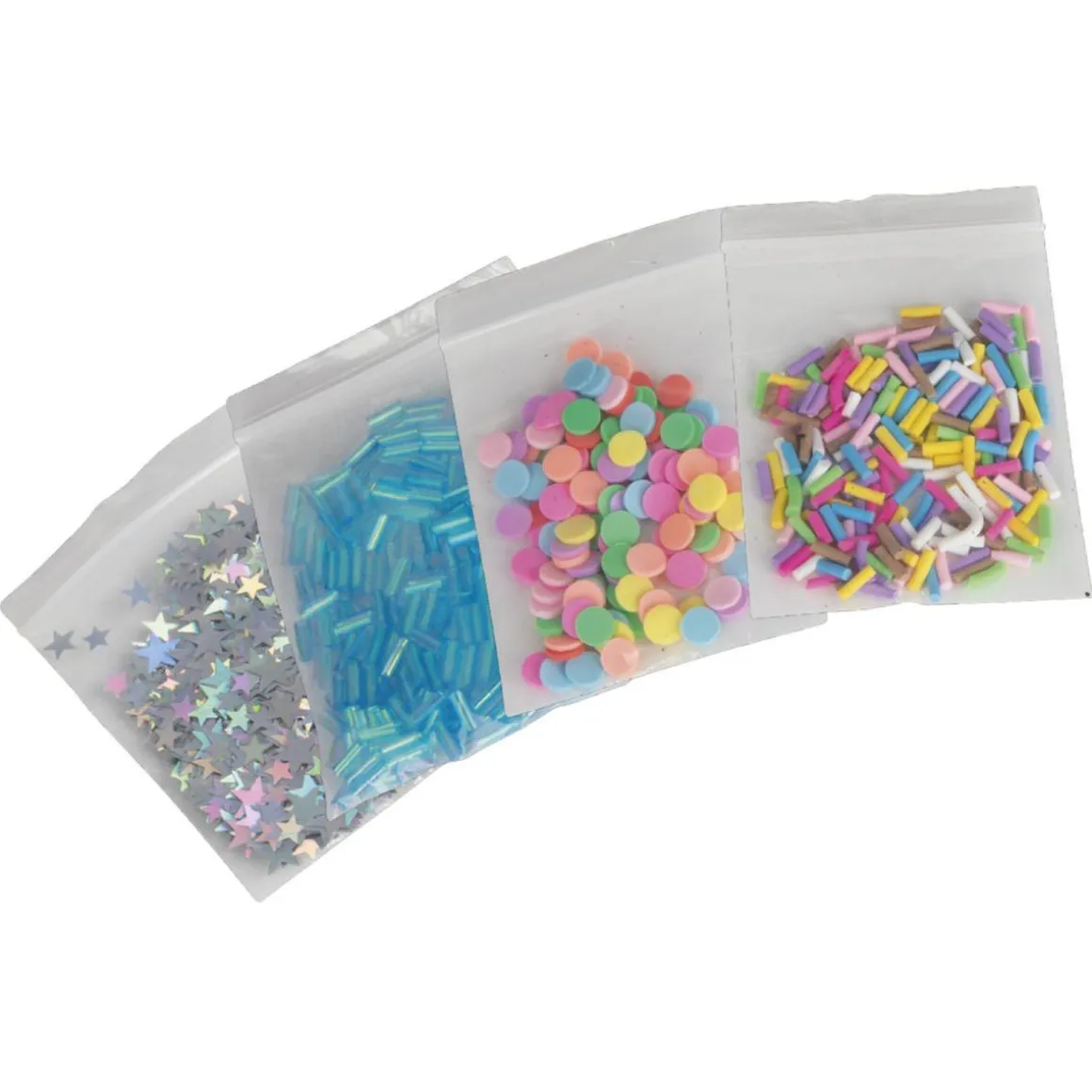 - 8 bonitos adornos: ¡pequeños colgantes de resina de colores que harán que tu slime o pasta de modelar sean aún más únicos!
