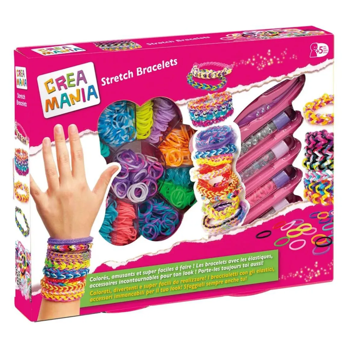 Creamania – Pulseras con gomas de colores, todo el material necesario para hacer fantásticas pulseras muy modernas.