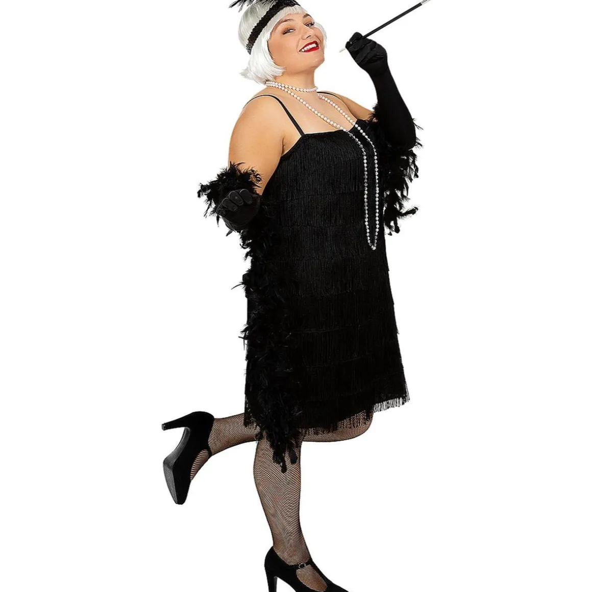 Brilla con glamour en tu próxima fiesta con el Disfraz de charlestón años 20 para mujer. Incluye un vestido elegante, guantes largos y una cinta para la cabeza, todo confeccionado en 100% poliéster. Ideal para eventos temáticos, carnavales o noches de jazz. ¡Déjate llevar por el estilo de los locos años 20!