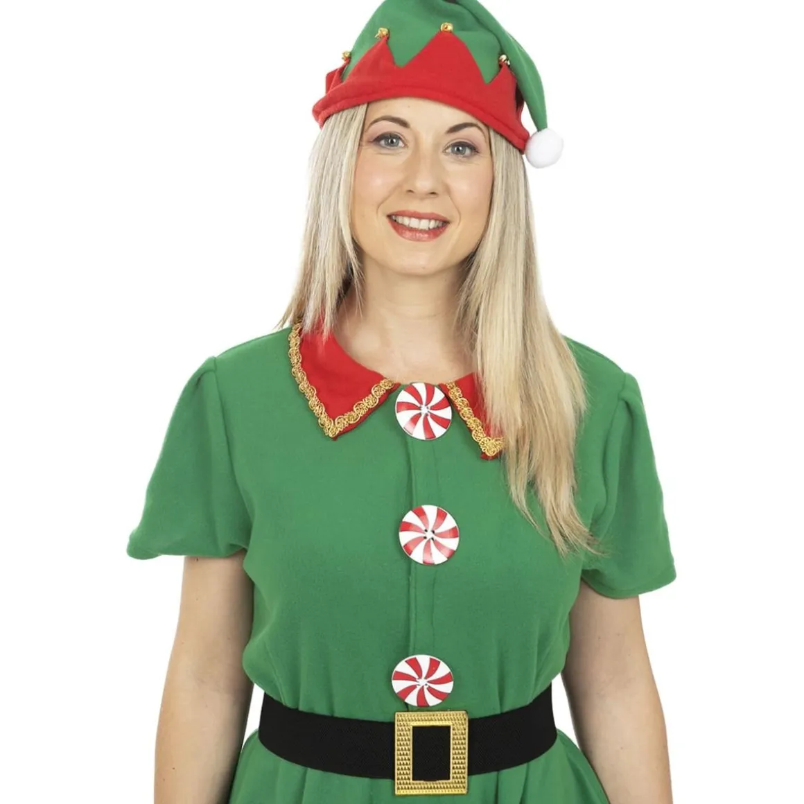 Este disfraz de elfa para mujer en talla M ofrece un look alegre y festivo para la Navidad. Incluye vestido, cinturón y gorrito, logrando un conjunto divertido y original.