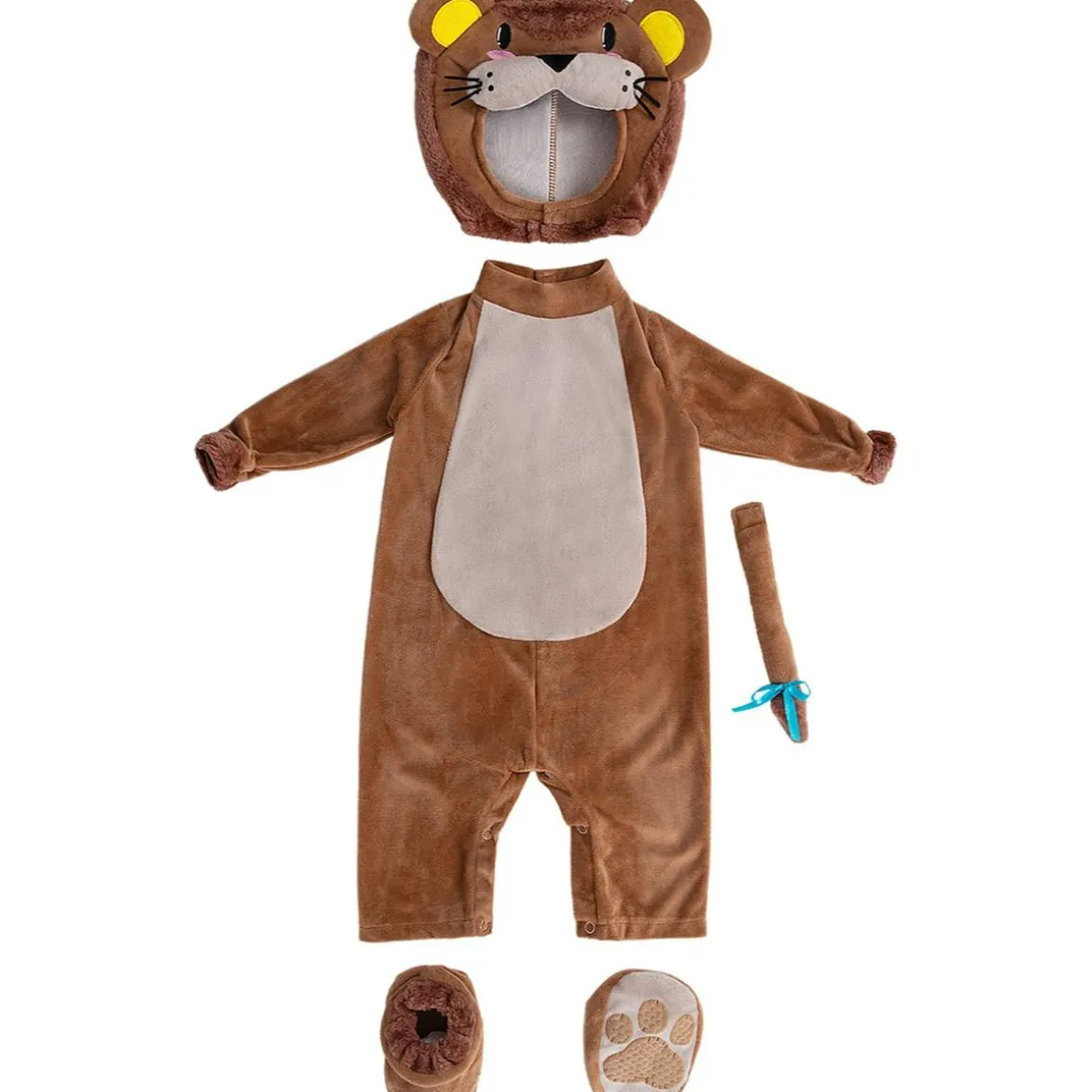 ¡Ruge con ternura con este disfraz de león para los más pequeños! Ideal para carnavales, fiestas temáticas y sesiones de fotos adorables.