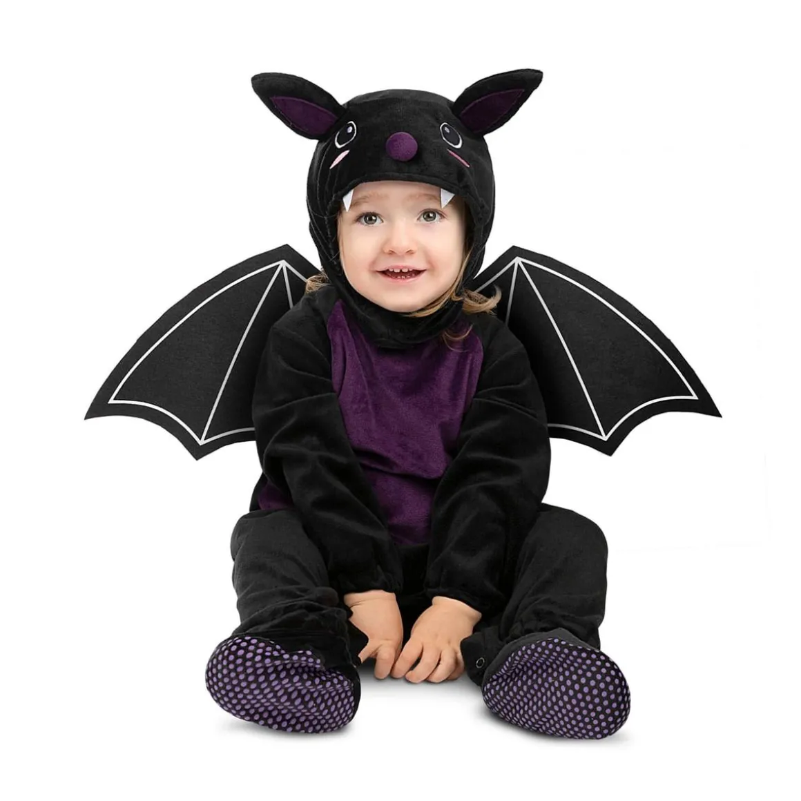 Este disfraz de murciélago en talla 0-6 meses está pensado para recién nacidos y primeros meses de vida. Consta de un mono con corchetes, un gorrito con orejas, alas suaves y cubrepies. El tejido delicado asegura comodidad para la piel sensible del bebé, mientras que el diseño oscuro y simpático lo convierte en el centro de todas las miradas. Perfecto para Halloween, Carnaval o sesiones fotográficas, es una opción entrañable que garantiza ternura y diversión desde sus primeros días.