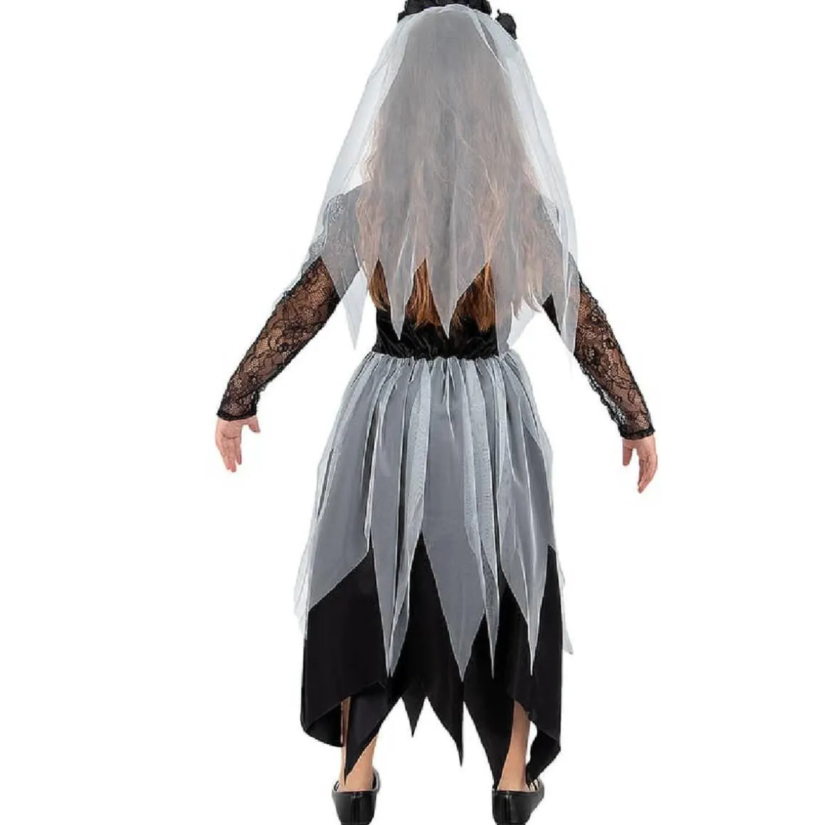 ¡El altar nunca fue tan aterrador! Con este disfraz de novia fantasma, tu peque se convertirá en la novia más espectral y elegante de la noche de Halloween o cualquier fiesta de disfraces.