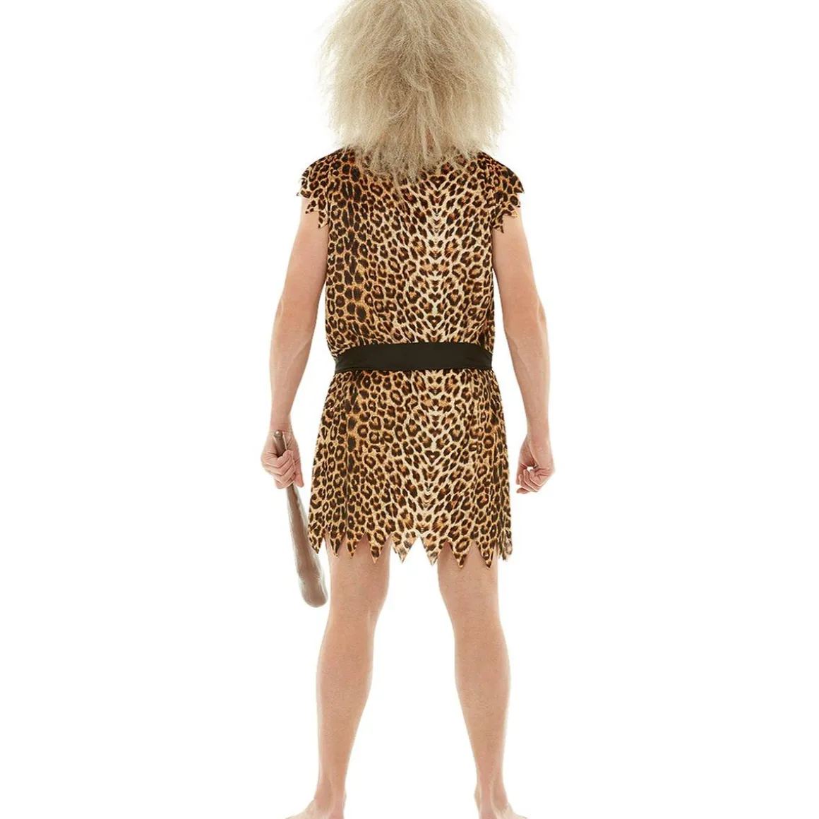 Regresa a la era de las cavernas con el Disfraz de troglodita. Incluye un vestido, cinturón y cinta para la cabeza, elaborado en 100% poliéster. Ideal para fiestas temáticas, carnavales o eventos divertidos. ¡Atrévete a destacar con este disfraz único!