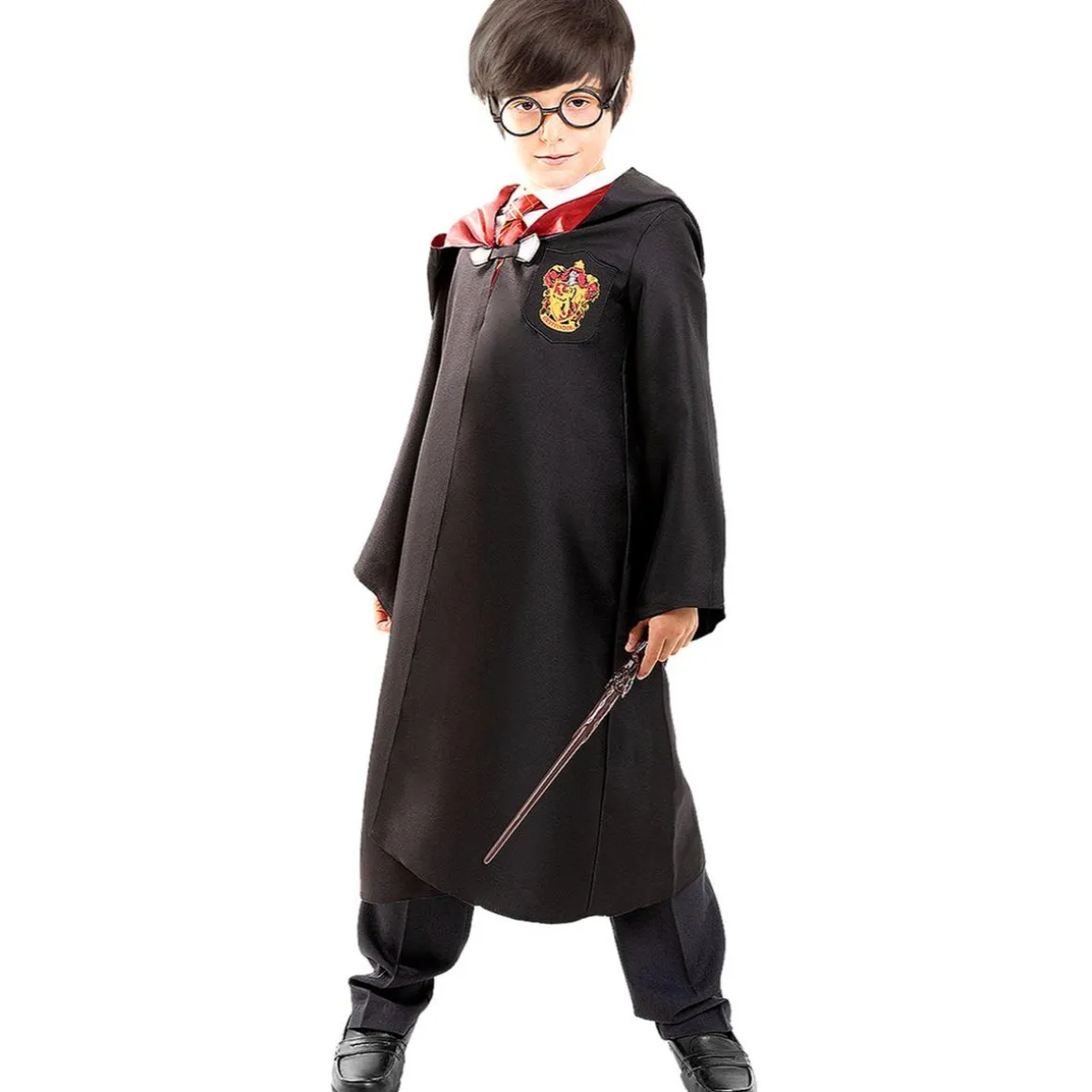 Dale a tu hijo el auténtico estilo de Gryffindor con el Disfraz Harry Potter para niños – Gryffindor. Este conjunto incluye una capa con capucha, ideal para representar al joven mago en sus aventuras mágicas.
