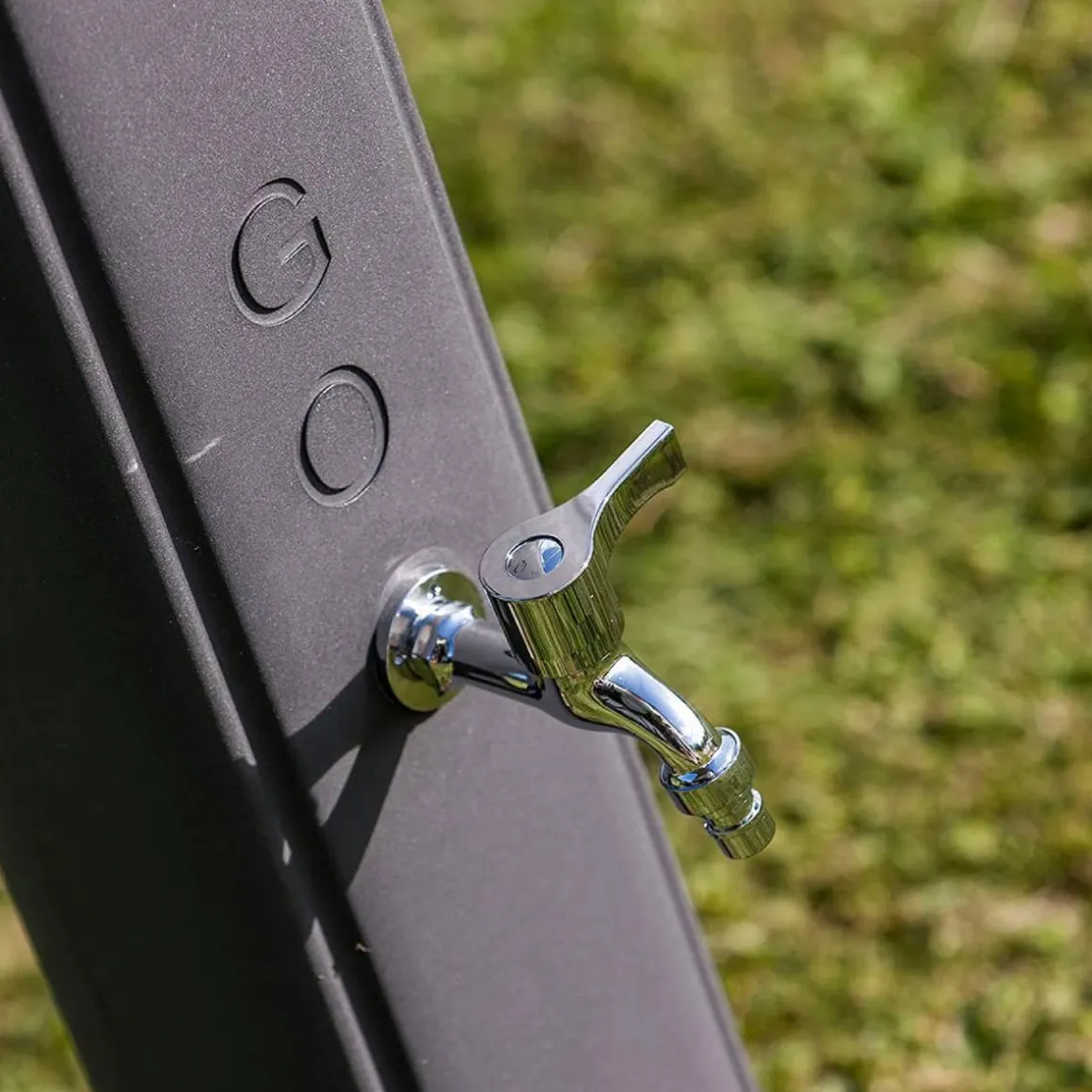 Esta ducha solar es ideal para instalar en el jardín o cerca de la piscina y disfrutar de agua caliente de forma rápida.