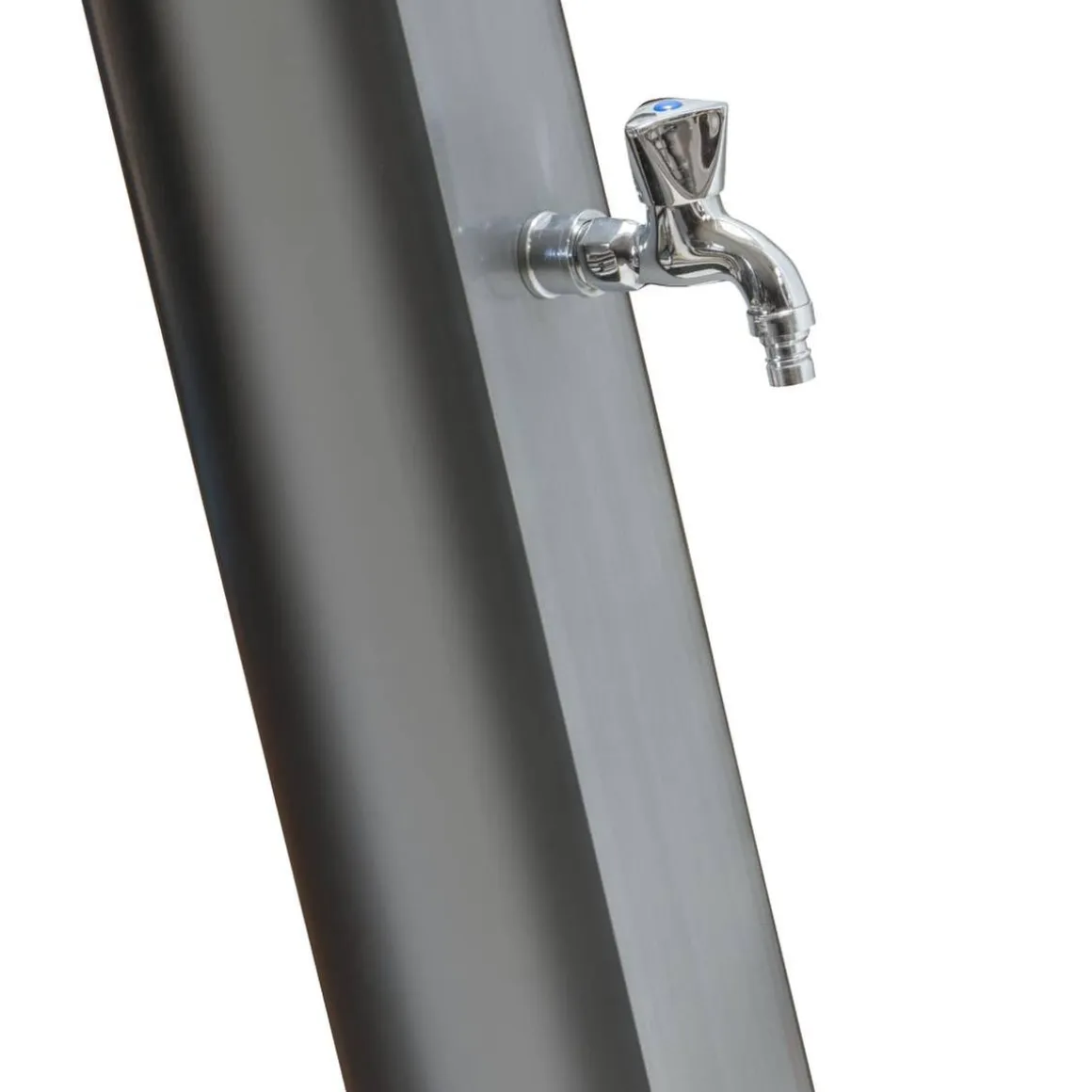 Esta ducha solar es ideal para instalar en el jardín o cerca de la piscina y disfrutar de agua caliente de forma rápida.