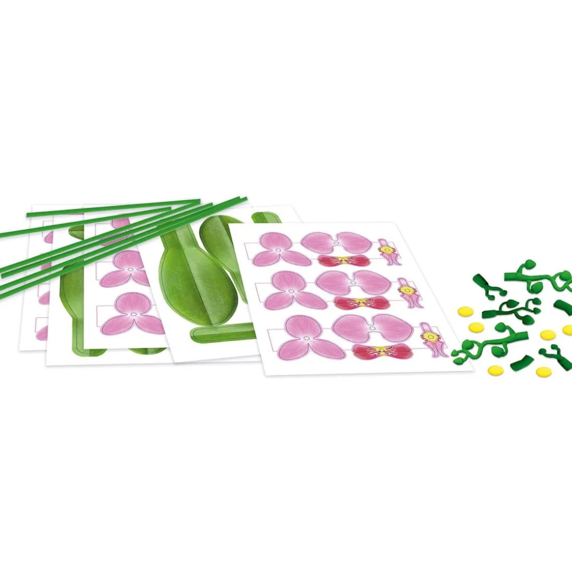 Educa Borras – Floral Art – Orquídea, un kit de manualidades para crear una planta de orquídeas de papel troquelado, sin necesidad de pegamento, ni tijeras.