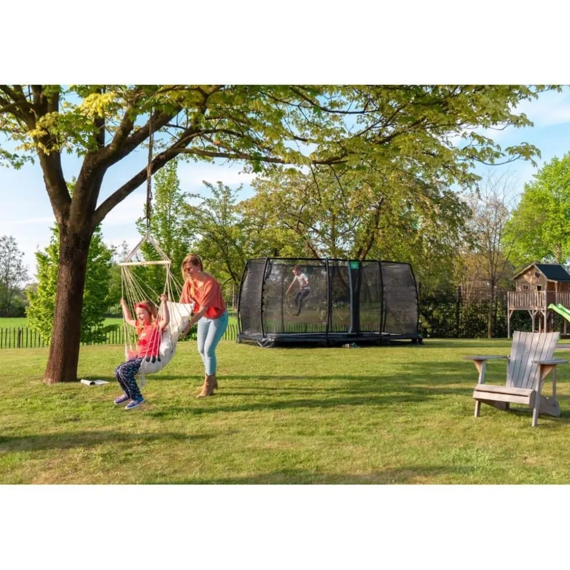 Exit – Cama elástica de suelo Allure Classic 214 x 366 cm negro, un trampolín para ser semienterrado con borde protector acolchado y red de seguridad.