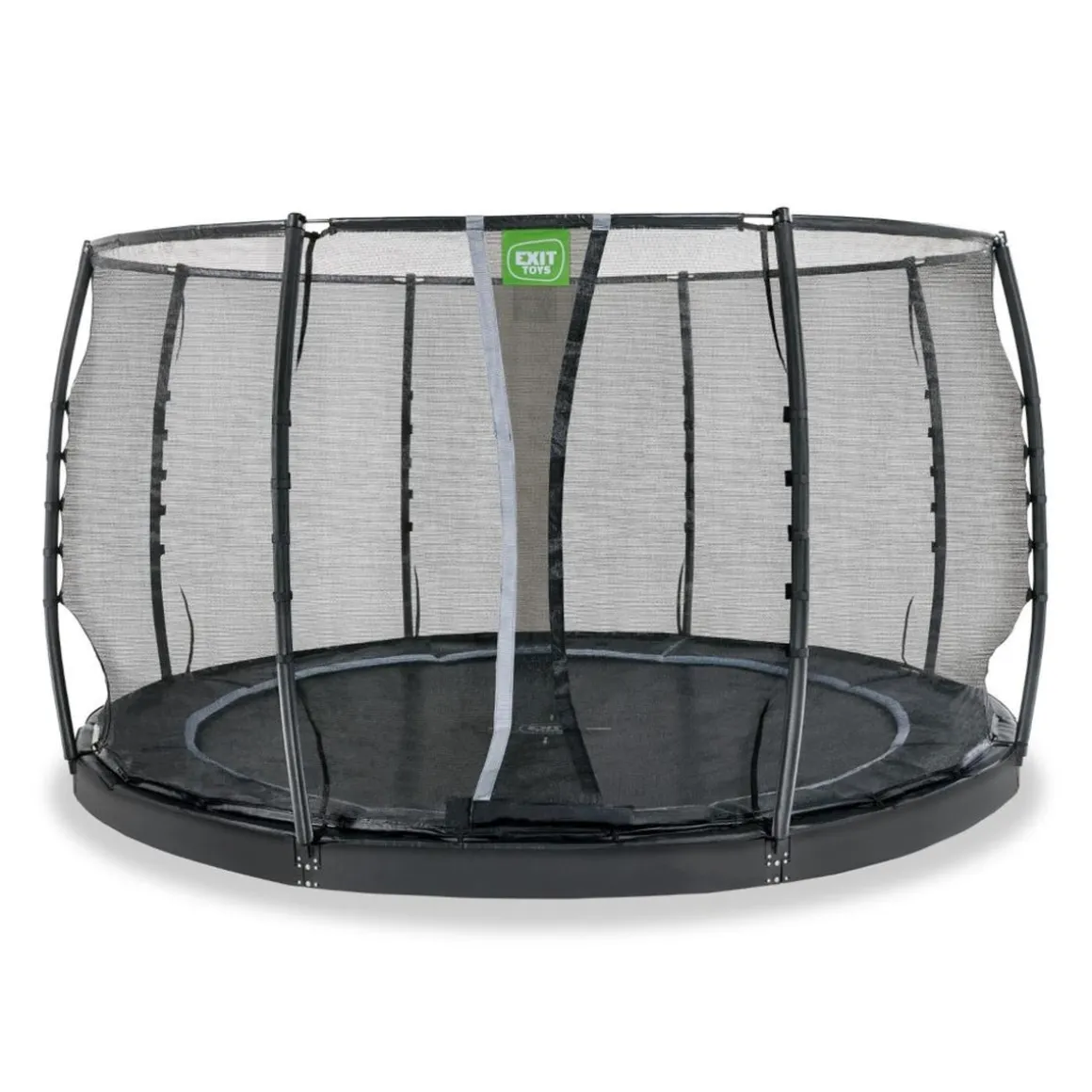 Exit – Cama elástica de suelo Dynamic 366 cm negro con red de seguridad, un trampolín redondo a nivel del suelo de color negro mate con calidad superior.
