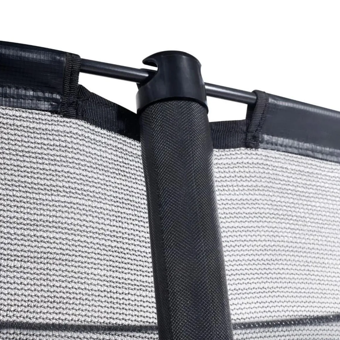 Viene con dos anillos de fibra de vidrio que aseguran que la red siempre permanezca bien tensada. Los postes están equipados con una capa protectora de espuma.