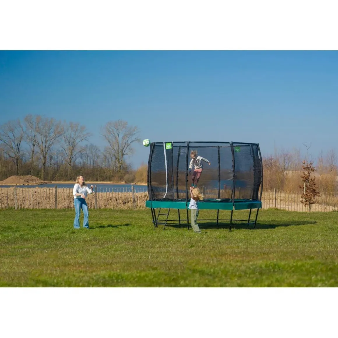 El trampolín Lotus Classic viene con una red de seguridad con una solapa superpuesta. Esta entrada apta para niños se cierra automáticamente para que la red de seguridad no quede abierta de forma inadvertida.
