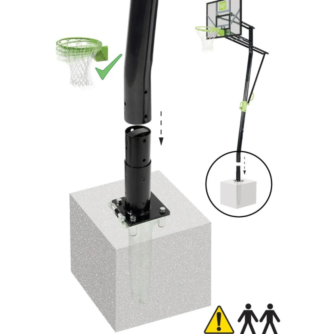 Se ancla al suelo de forma fija con un bloque de cemento, por lo que no se puede mover el tablero de baloncesto después del montaje.