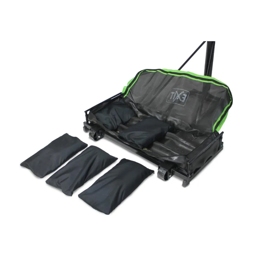 Los cinco sacos para la arena suministrados como contrapeso se llenan y se colocan debajo de la cubierta, manteniendo la canasta firmemente en su lugar.