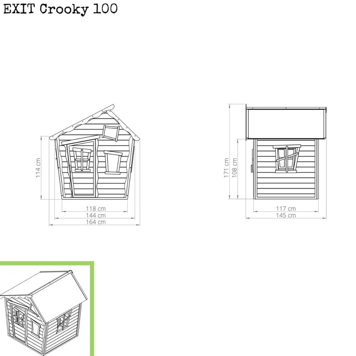 Los niños no tendrán un momento aburrido en la casita de juegos de madera Crooky de Exit. Se instala sobre el suelo, ocupa poco espacio y por lo tanto, es adecuada para cualquier jardín.