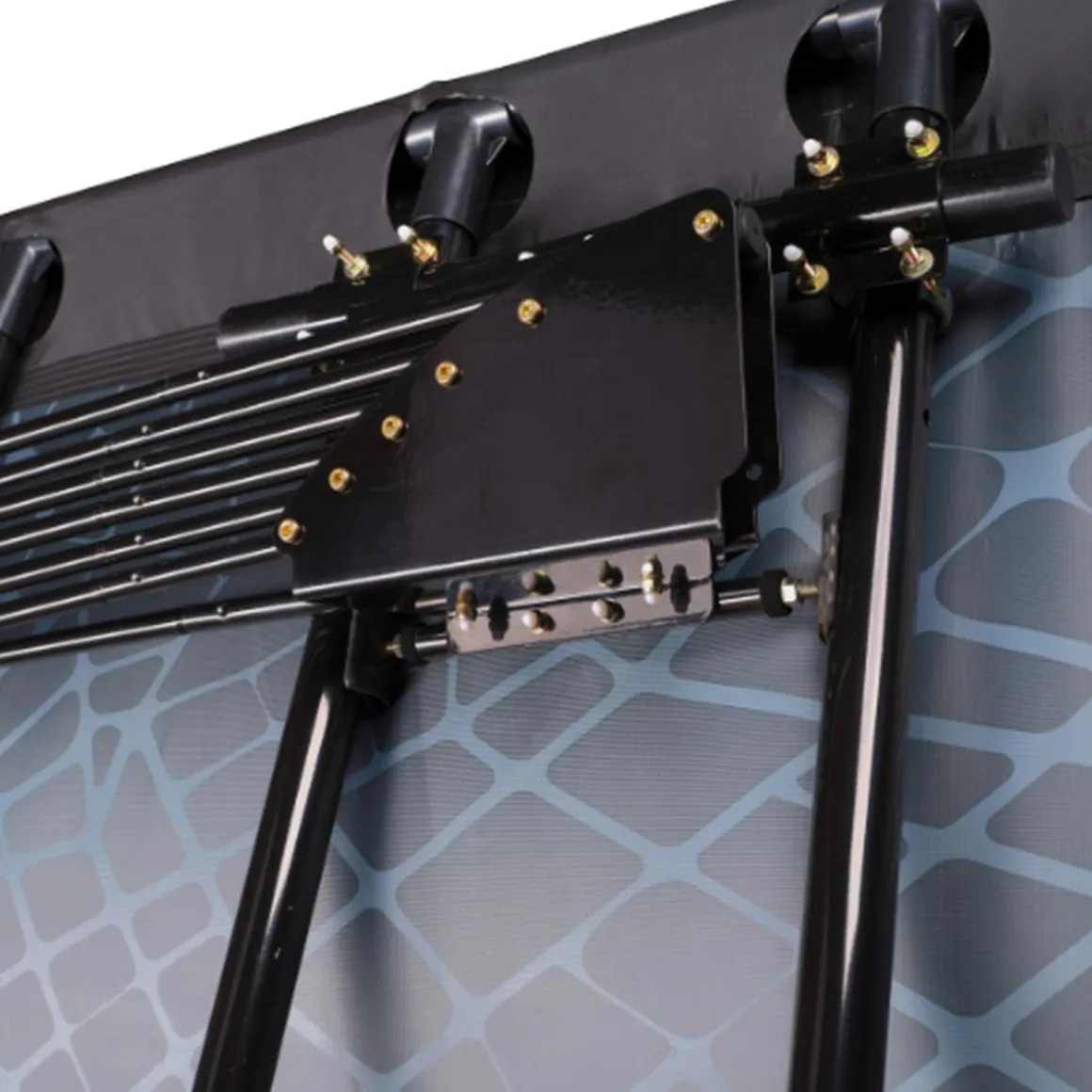Cuando la piscina no está en uso, puede sujetar la cúpula de forma segura a la piscina con los elásticos incluidos. De esta manera, la suciedad no encontrará su camino hacia el agua. El recinto es fácil de abrir y cerrar debido a los resortes de presión de gas integrados.