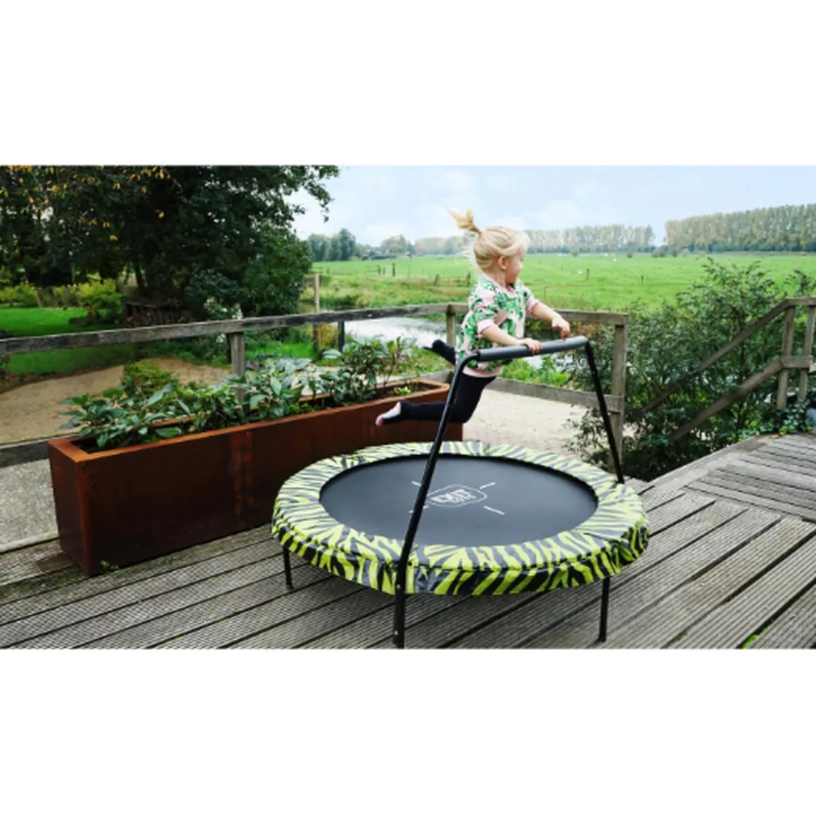 La barra de trampolín ofrece soporte y agarre adicionales, para que los niños pequeños puedan saltar de manera segura y permanecer en su lugar al mismo tiempo.