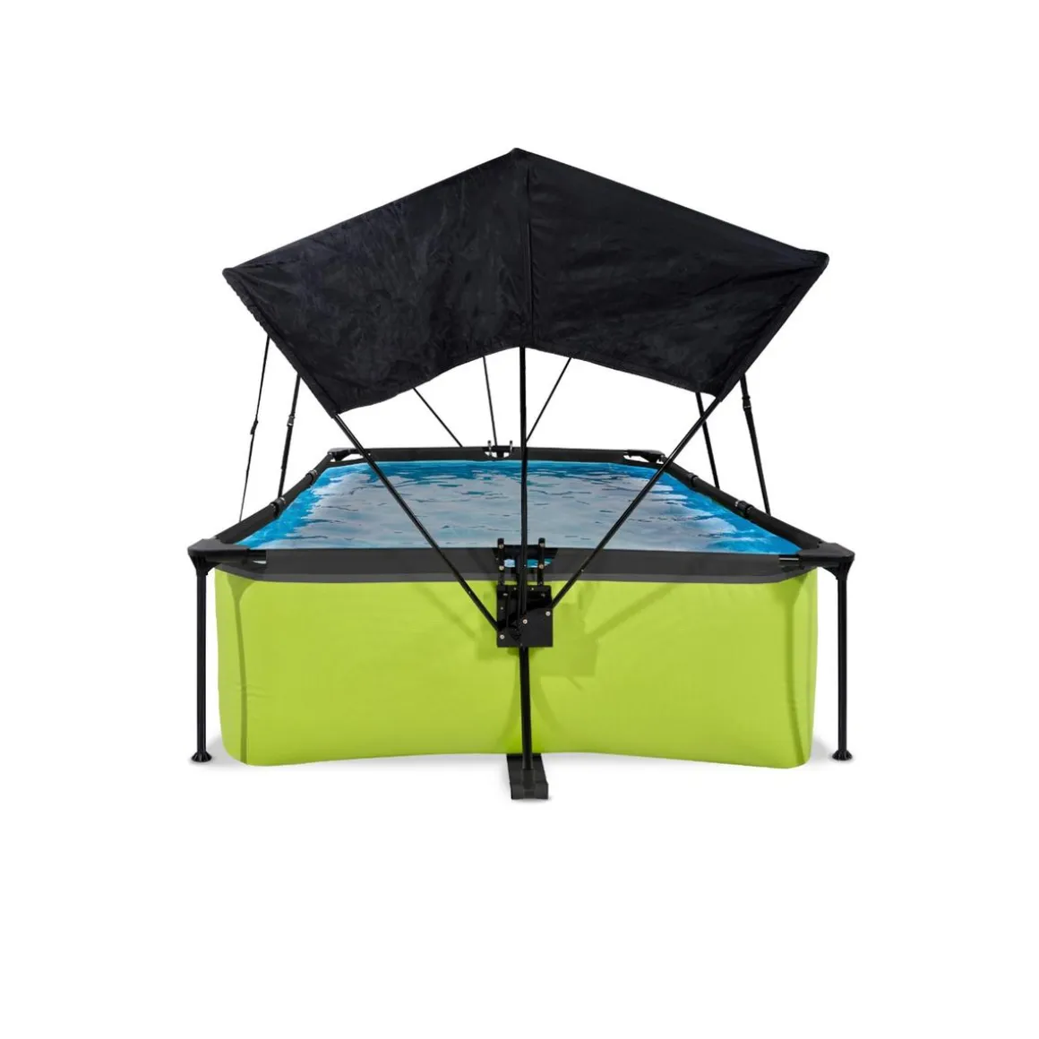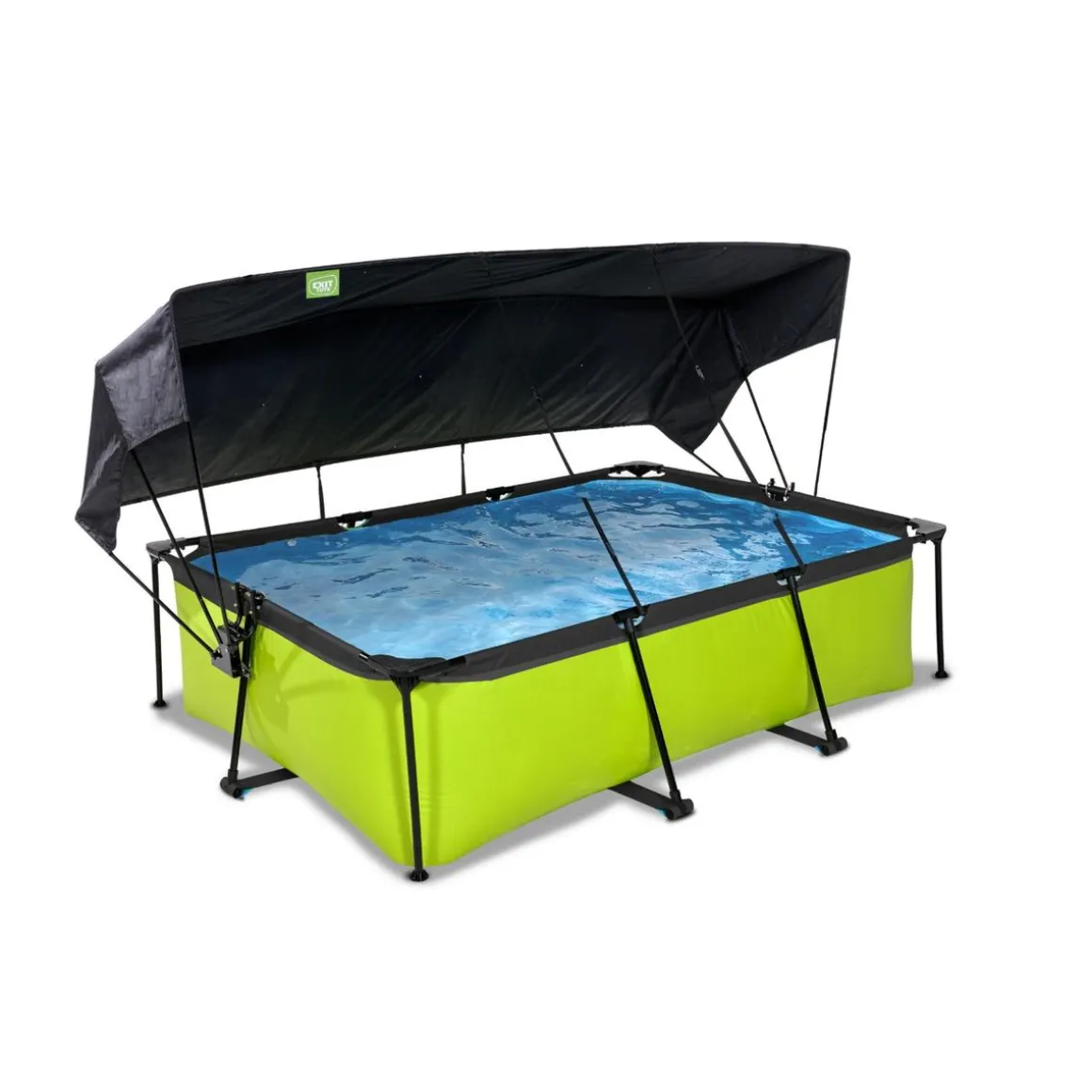 Exit – Piscina Lime verde 220 x 150 x 65 cm con filtro y toldo negro, una piscina rectangular de color verde lima que se integra perfectamente en tu jardín.