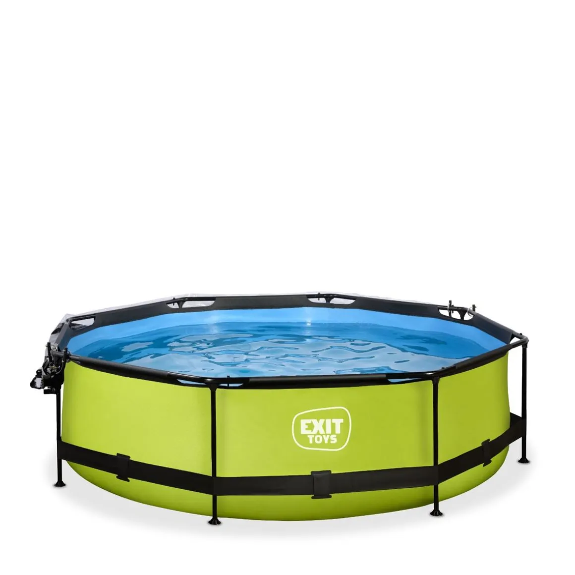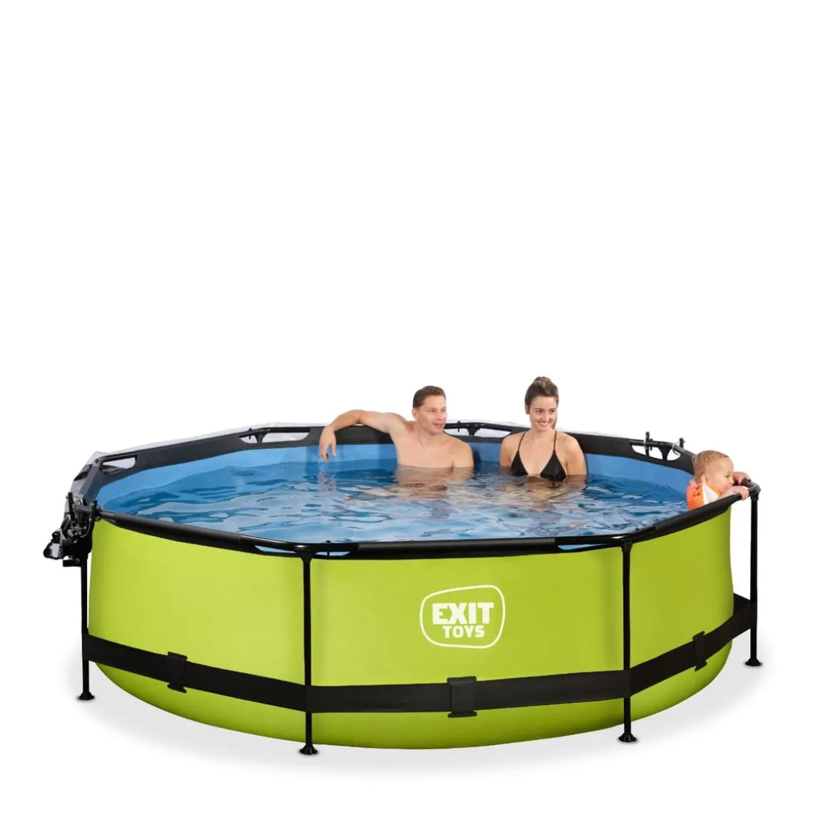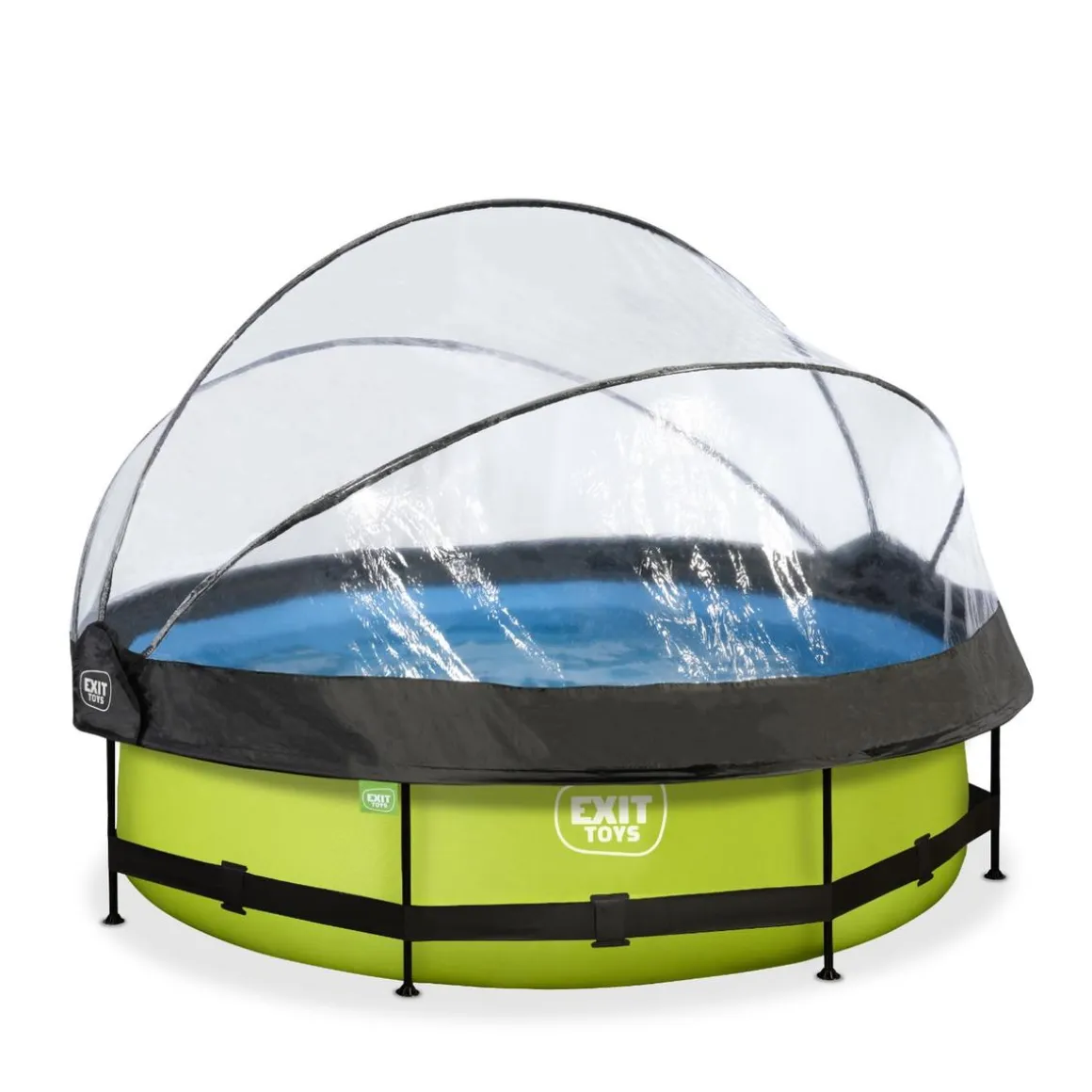 Exit – Piscina Lime verde diámetro 300 x 76 cm con filtro y cúpula transparente, una piscina redonda de color verde lima que se integra perfectamente en tu jardín.
