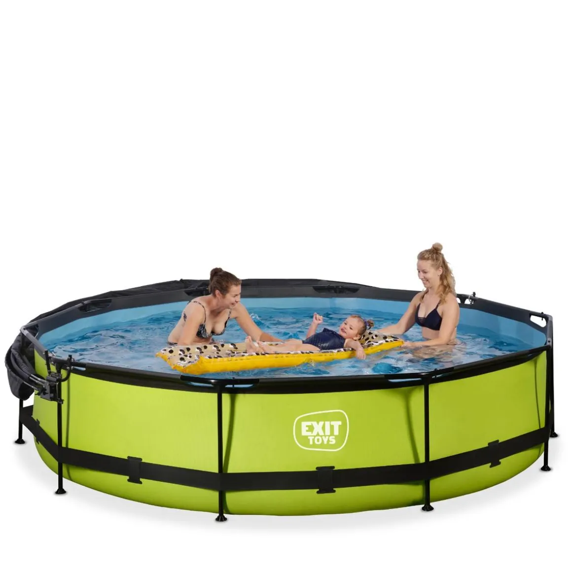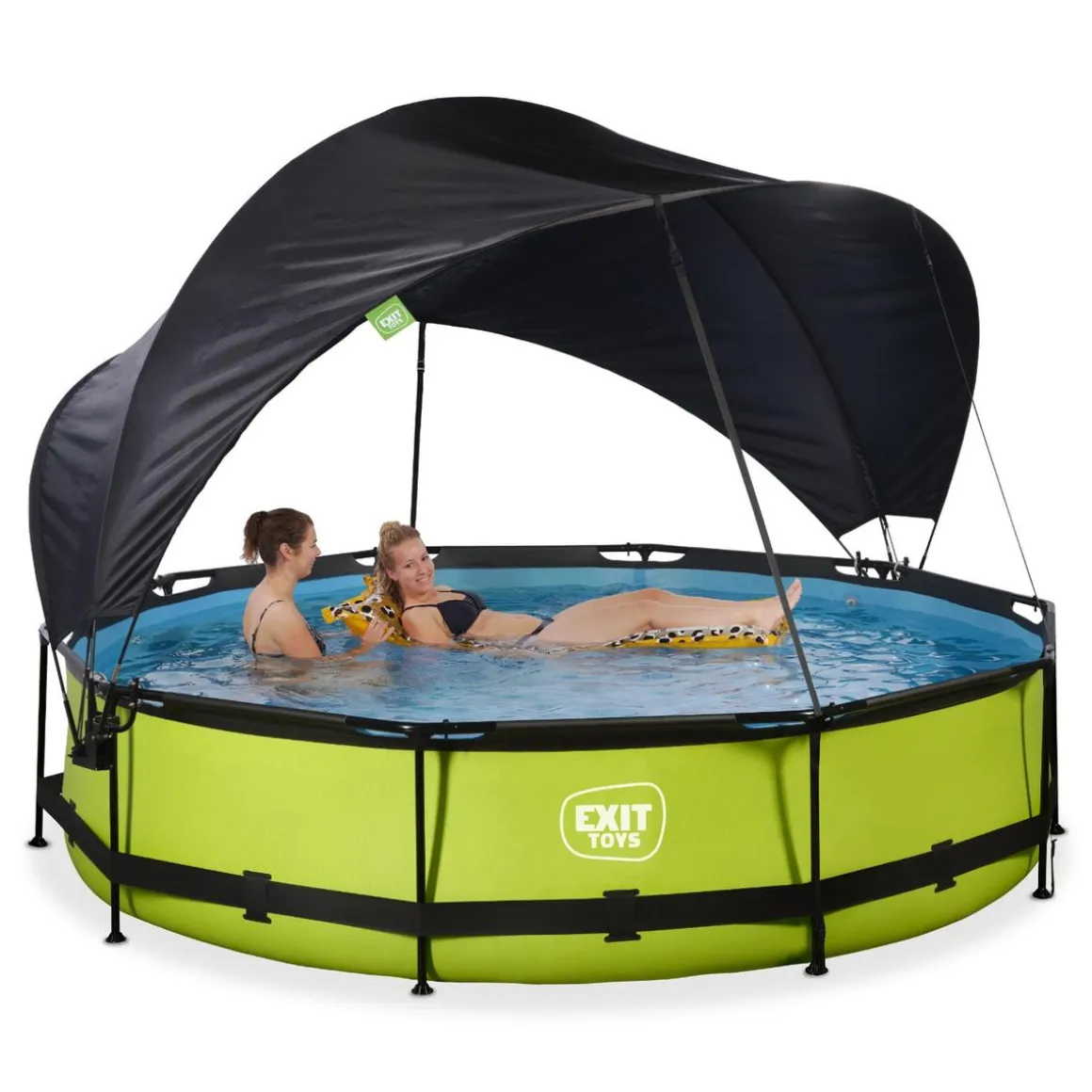 Exit – Piscina Lime verde diámetro 360 x 76 cm con filtro y toldo negro, una piscina redonda de color verde lima que se integra perfectamente en tu jardín.