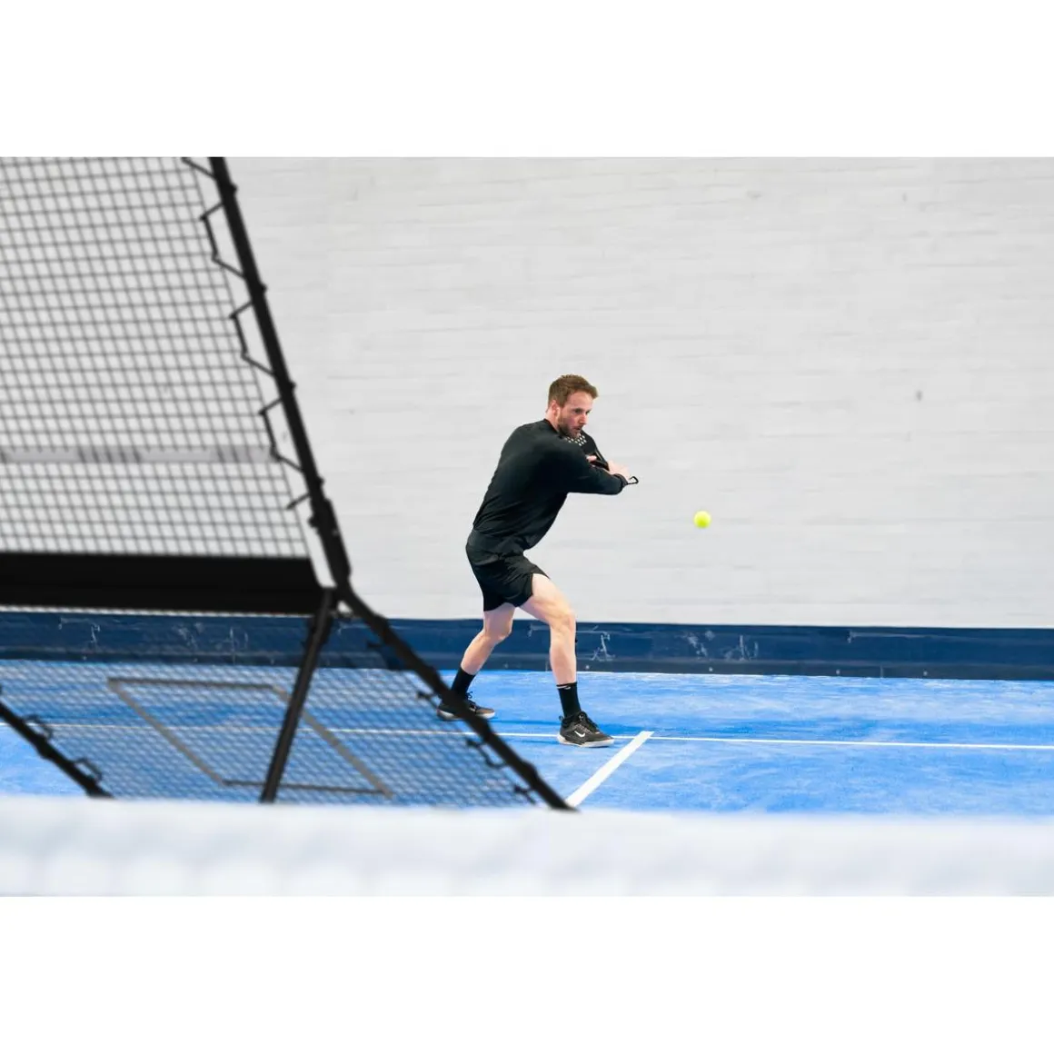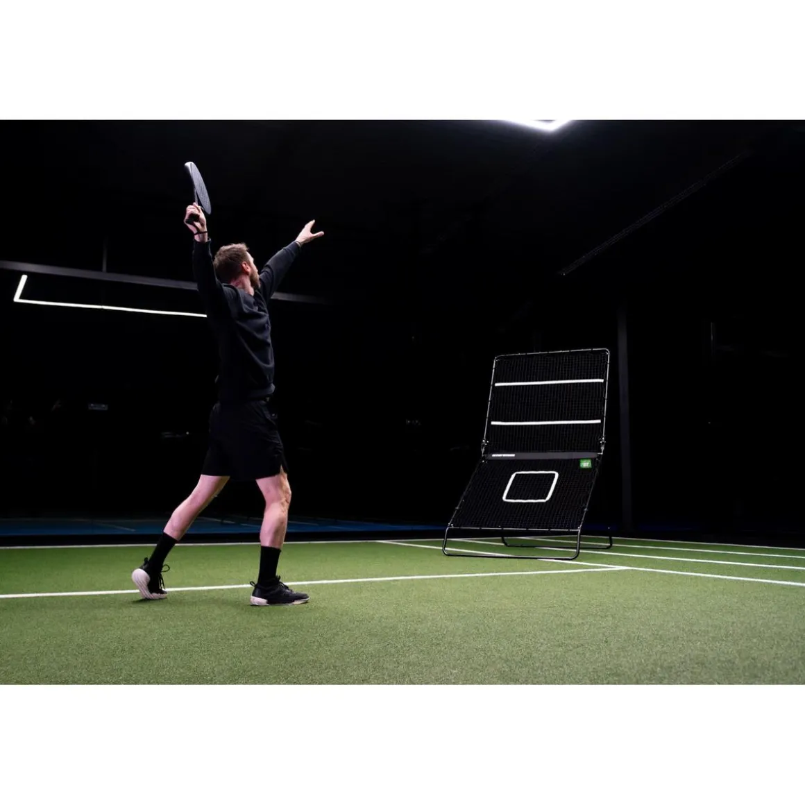 El reboteador de pádel consta de dos redes (cada una con un tamaño de 115 x 110 cm) para practicar diversos golpes de pádel. La red inferior es ideal para remates potentes y golpes como la víbora o la bandeja. La red superior es perfecta para golpes como la volea de derechas y volea de revés. La red superior del reboteador se puede ajustar a dos tensiones diferentes en un abrir y cerrar de ojos. Gracias a las diferentes tensiones de red, el reboteador de pádel Smash de Exit es adecuado para cada golpe y ofrece una experiencia de práctica versátil para jugadores de pádel de todos los niveles.