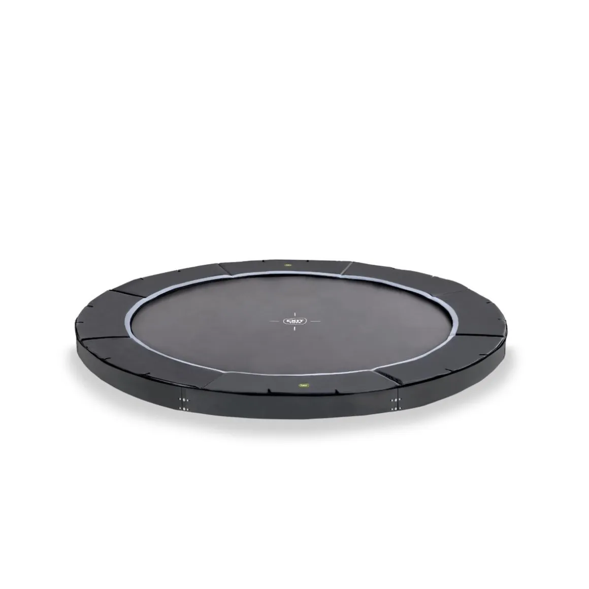Exit – Trampolín deportivo de suelo Dynamic 427 cm negro, un trampolín redondo para enterrar de color negro mate y sin red.