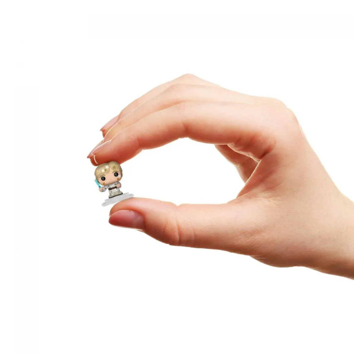 La caja del Bitty Pop! puede almacenarse dentro del gabinete de arcade Bitty Pop!, directamente debajo de la figura de Luke Skywalker. La figura de Luke Skywalker mide aproximadamente 2,3 cm de altura y el gabinete de arcade mide aproximadamente 8,9 cm de altura.